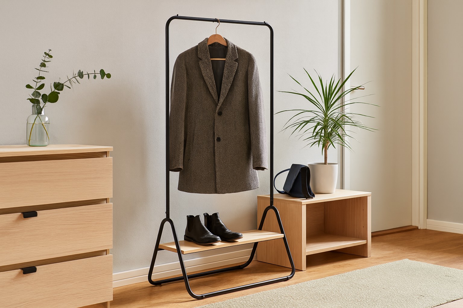 Внесите в свой интерьер немного современного лофт-стиля. Этот отдельно стоящий вешалка с одной полкой – это сочетание практичности и элегантности, которое преобразит вашу прихожую, гардеробную или офис. Благодаря мобильной конструкции он не требует сверления или монтажа, поэтому вы можете в любой момент переставить его туда, где он вам нужен.