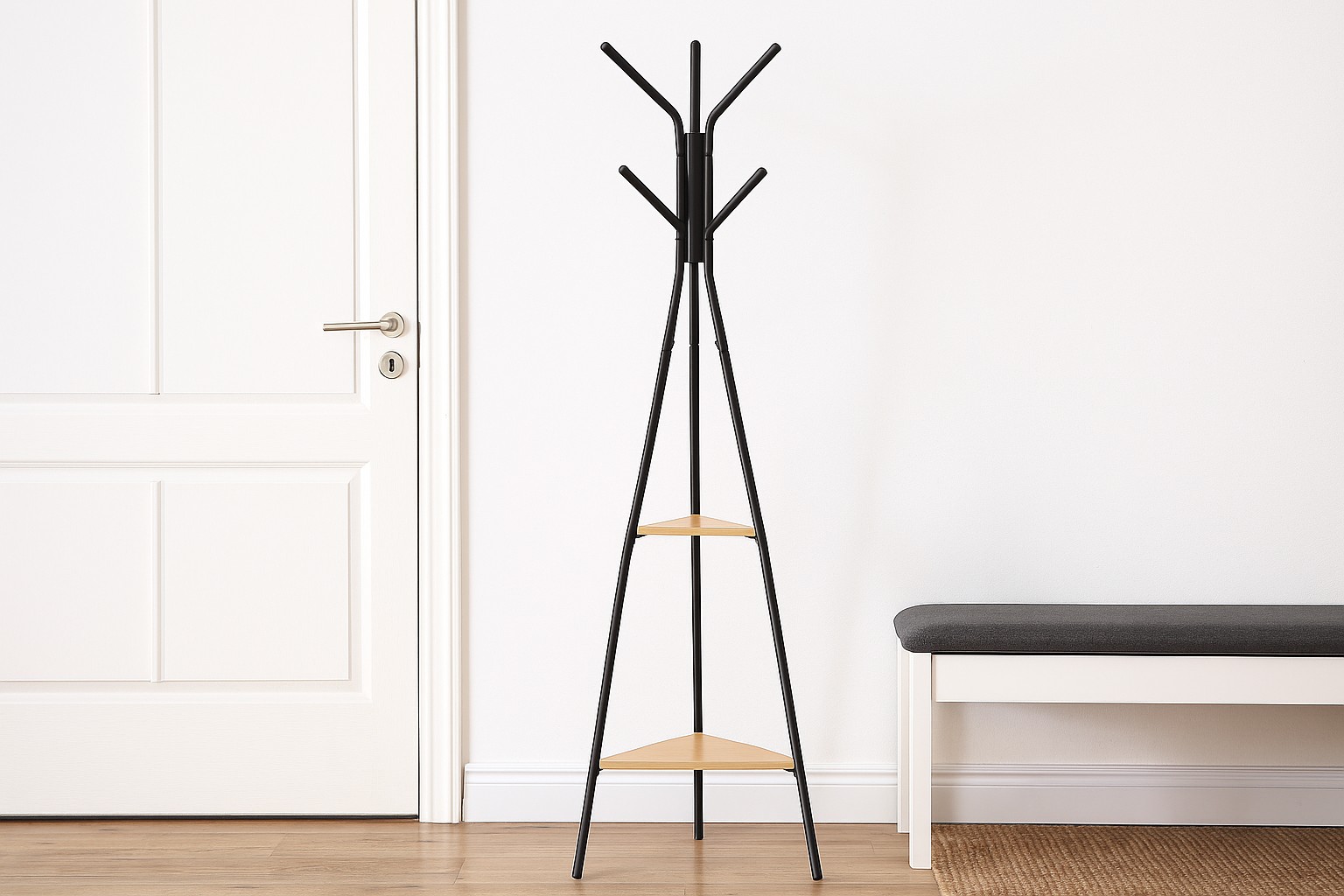 🧥 Множество крючков – удобно вешать пальто, куртки и аксессуары.