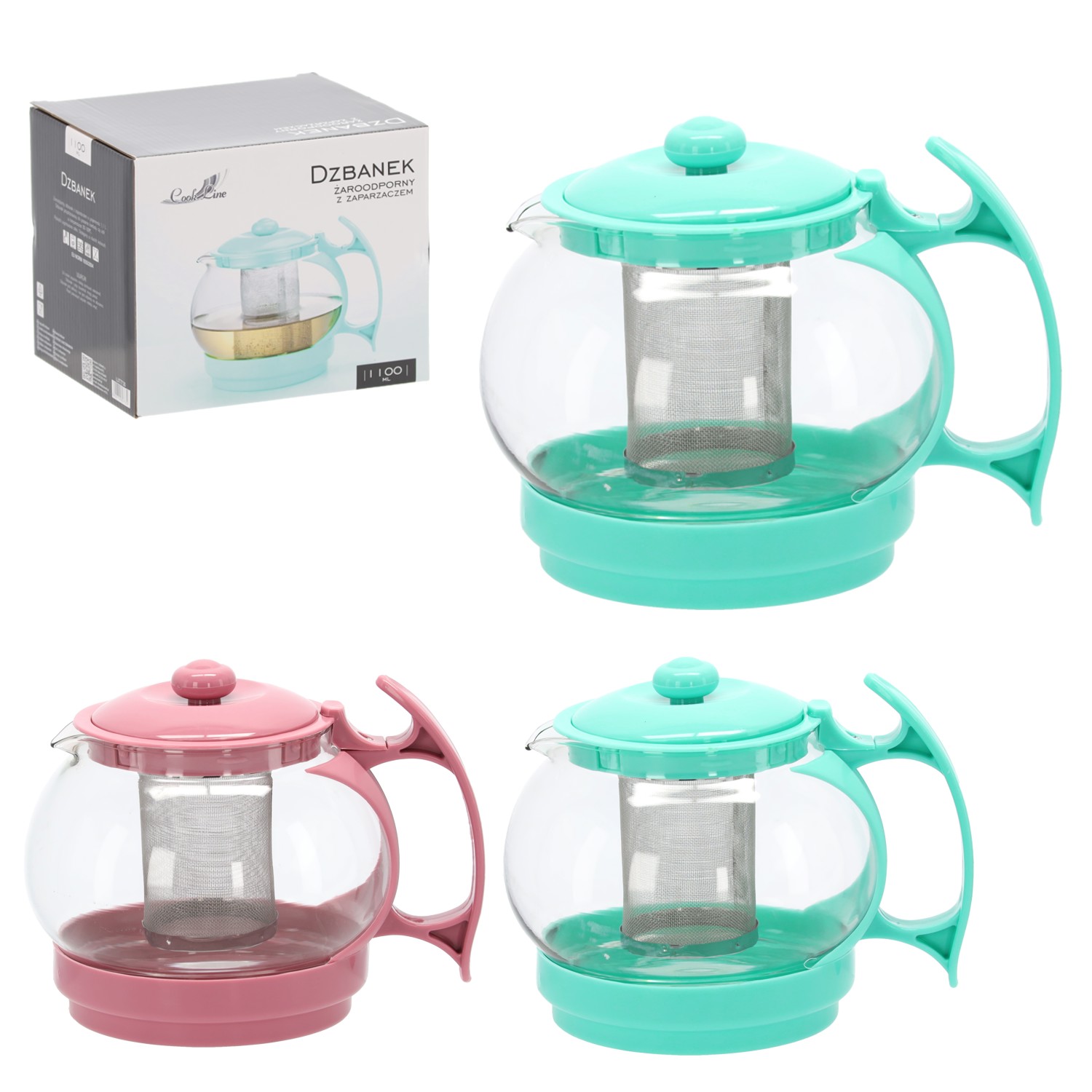 Чайник объемом 1,1 л изготовлен из высококачественного жаропрочного стекла. Идеально подходит для хранения как горячих, так и холодных напитков. Имеет не нагревающийся ручку. Удобная крышка позволяет легко наполнять чайник, а практичное отверстие и носик обеспечивают удобное наливание напитков. Чайник – это практичный предмет, необходимый в каждом доме.