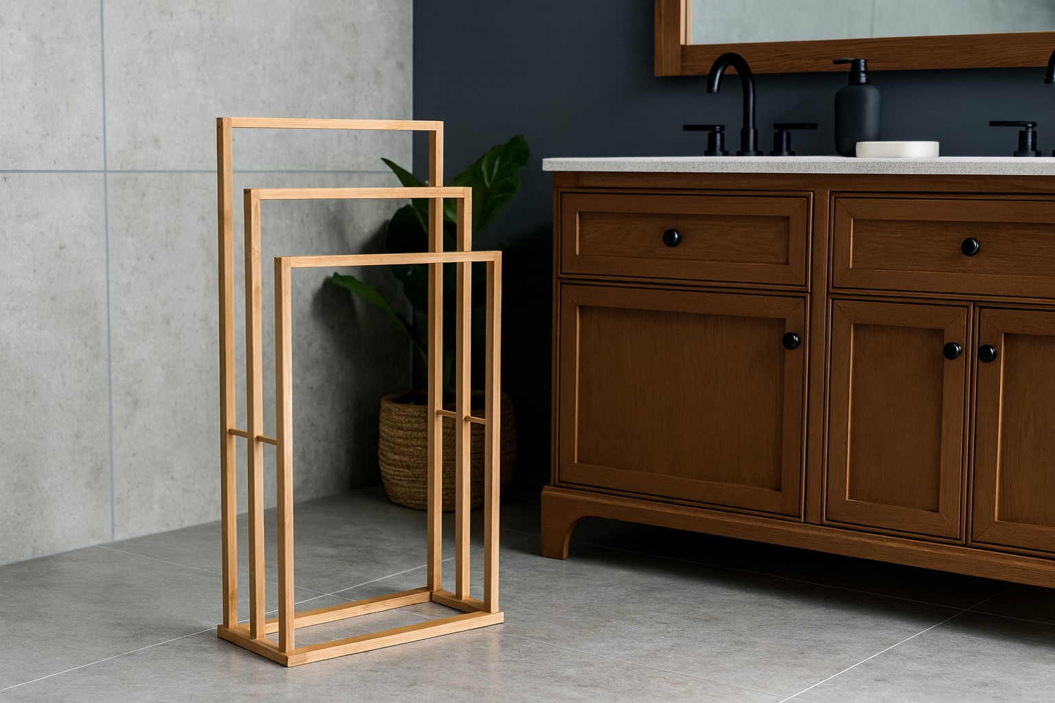 Вы ищете элегантный и практичный способ хранения полотенец в ванной комнате? Этот бамбуковый держатель для полотенец является идеальным решением. Натуральный материал придает интерьеру уютную и экологичную атмосферу, а три уровня позволяют удобно развесить полотенца для всей семьи.