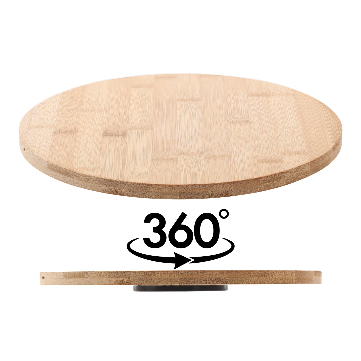 Поворотная доска из бамбука предназначена для подачи различных сортов сыра, колбас или других закусок во время семейных встреч или неформальных мероприятий, а также является функциональным прибором для подачи пиццы в ресторане. Она также отлично подойдет для подачи завтраков и ужинов. Благодаря самовращающемуся механизму каждый из гостей будет иметь легкий доступ к продуктам, размещенным на ней.