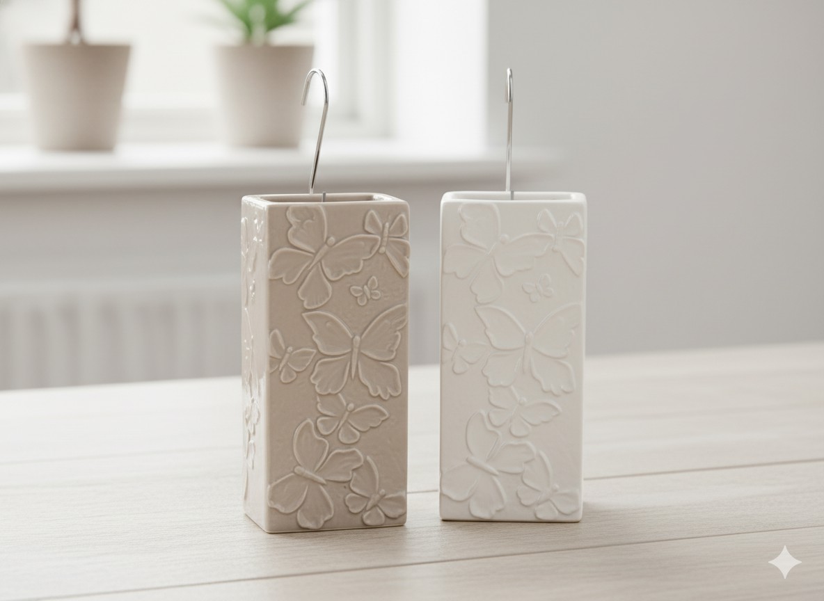 Вы хотите обеспечить здоровый климат в доме и одновременно украсить интерьер? Этот очаровательный набор из 6 керамических увлажнителей с бабочками представляет собой идеальное сочетание функциональности и эстетики. Достаточно повесить их на радиатор, наполнить водой – и они естественным образом увлажнят воздух в вашем доме.