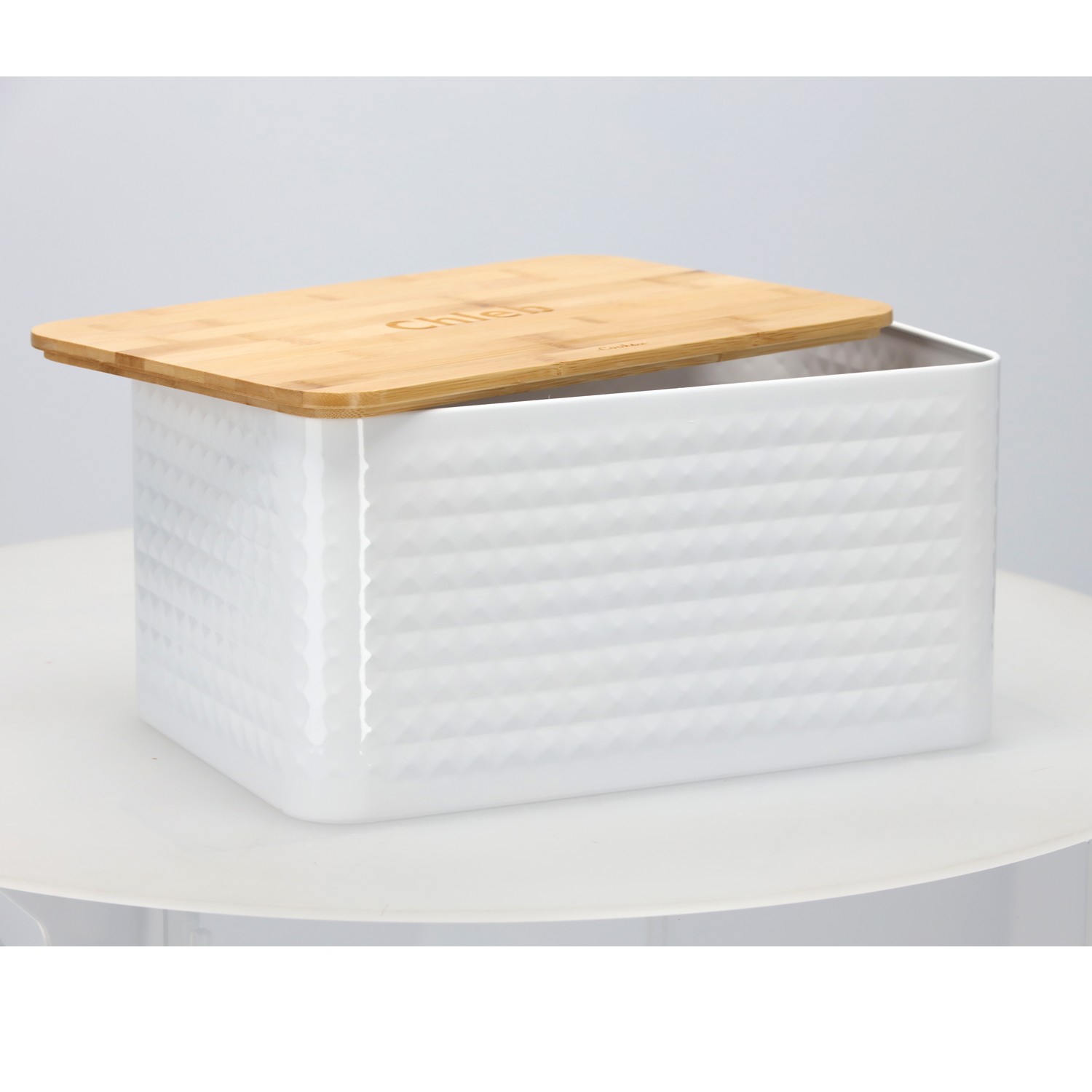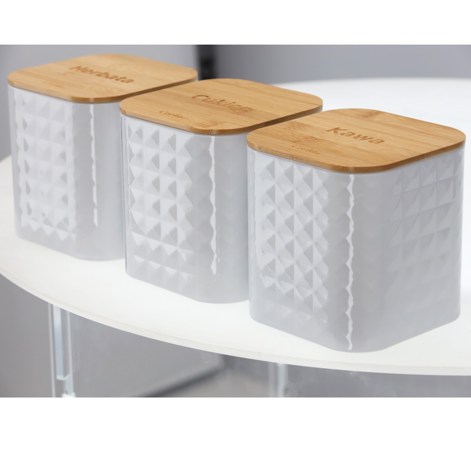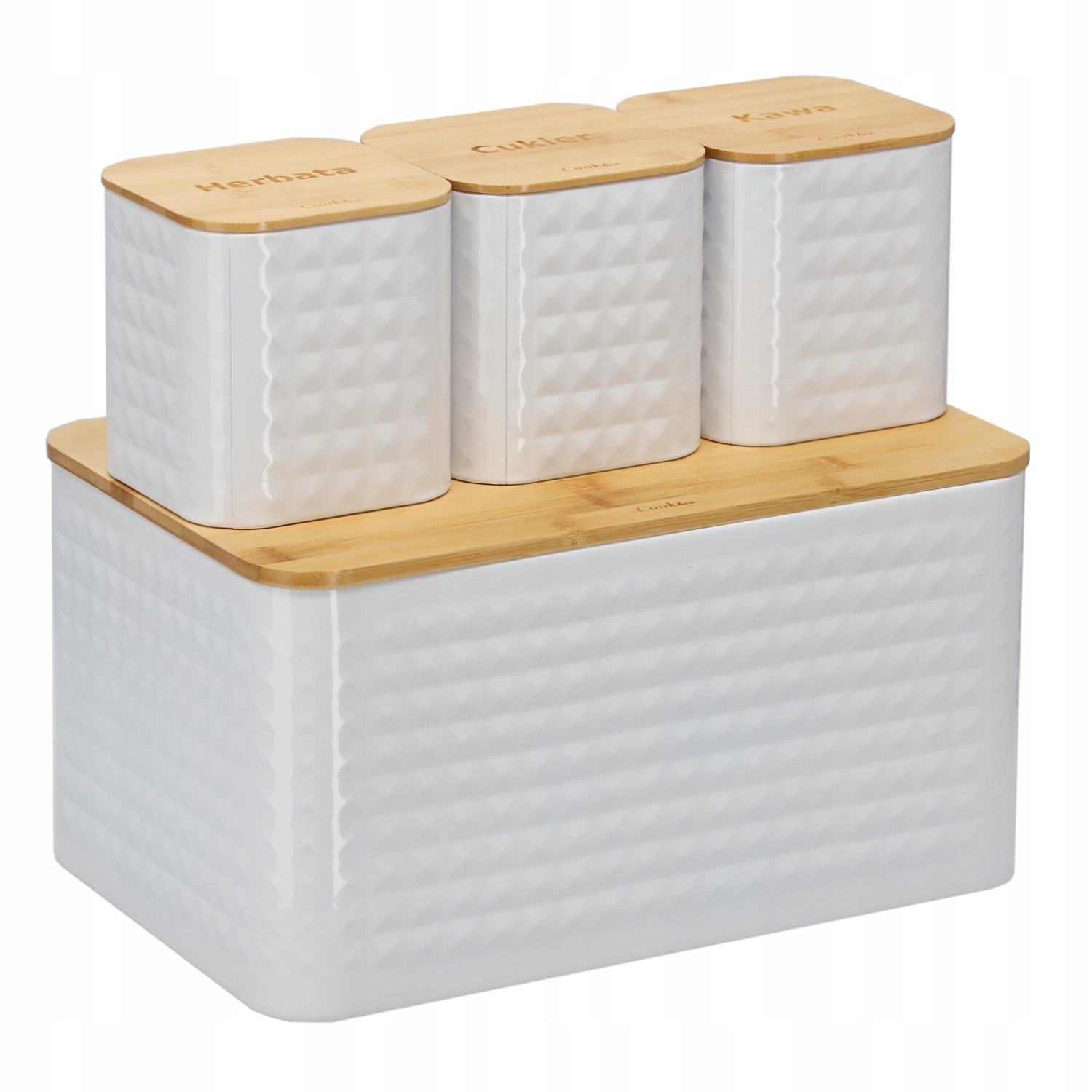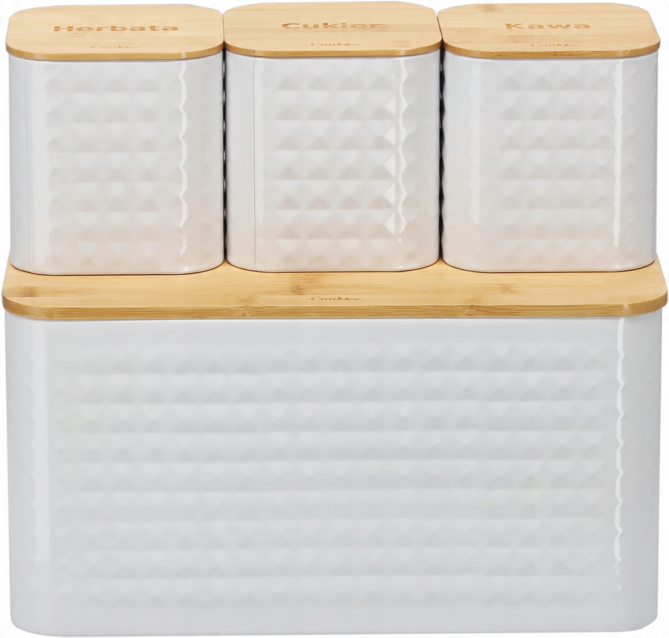 Металлический эмалированный хлебник позволит вам дольше сохранить свежесть хлеба и эффективно защитит его от появления плесени. Удобное открывание облегчает доступ к хранящимся продуктам. Благодаря ему ваш хлеб всегда будет вкусным и хрустящим. Кроме того, в набор входят контейнеры длясахара, кофе и чая.