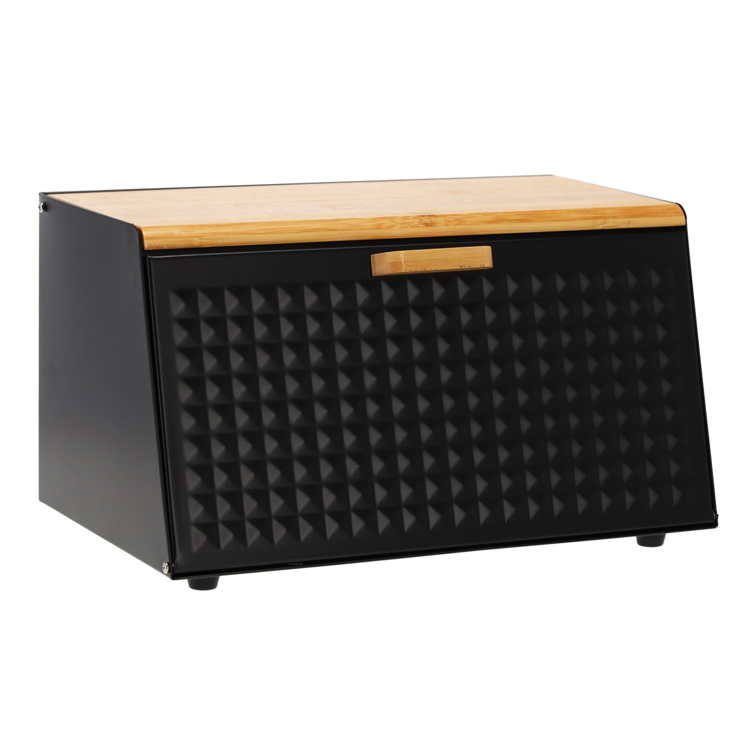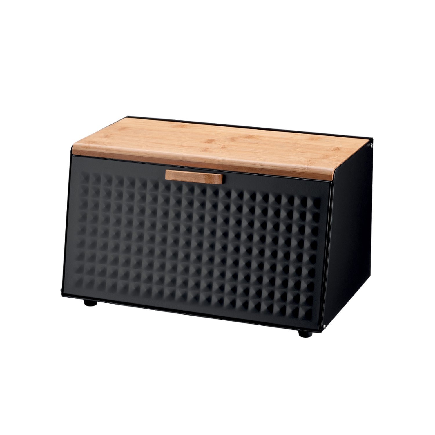 ХЛЕБНИК HIBISCO ЭМАЛИРОВАННЫЙ С БАМБУКОВОЙ КРЫШКОЙ 🌿 ЧЕРНЫЙ 35,5×17×19,5 СМ – СОВРЕМЕННЫЙ И ЭЛЕГАНТНЫЙ ✨