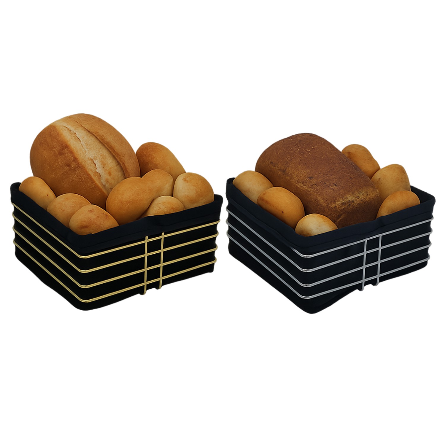 Корзина для хлеба с черной вставкой. На выбор: хромированный (серебристый) или золотой каркас.Размер: 21,5 x 21,5 x 11 см.