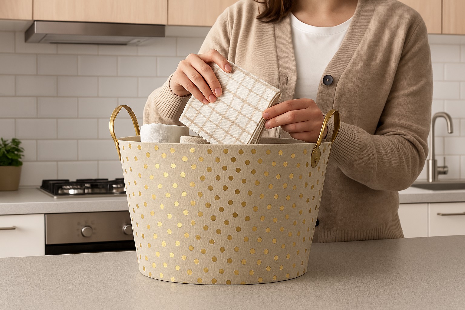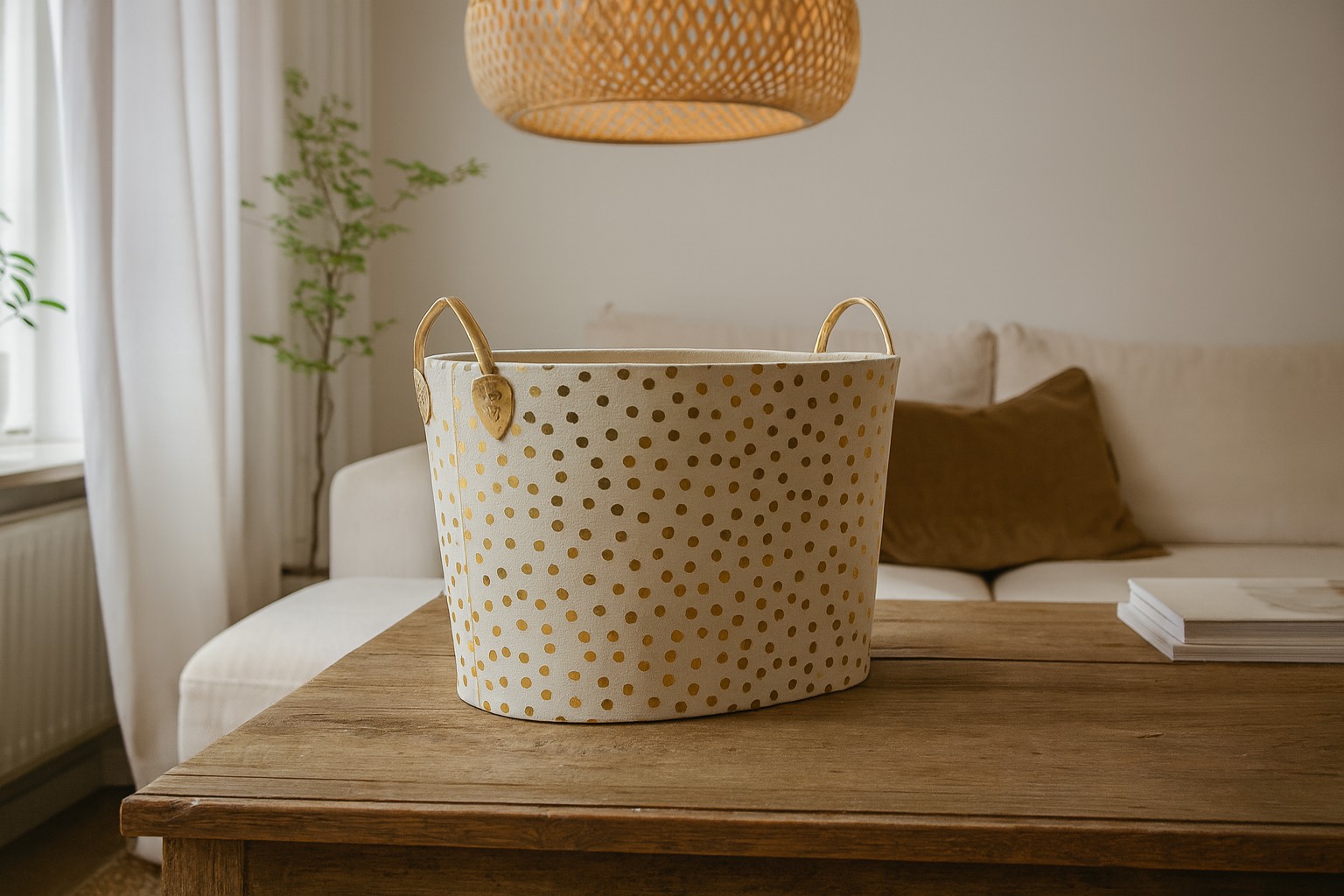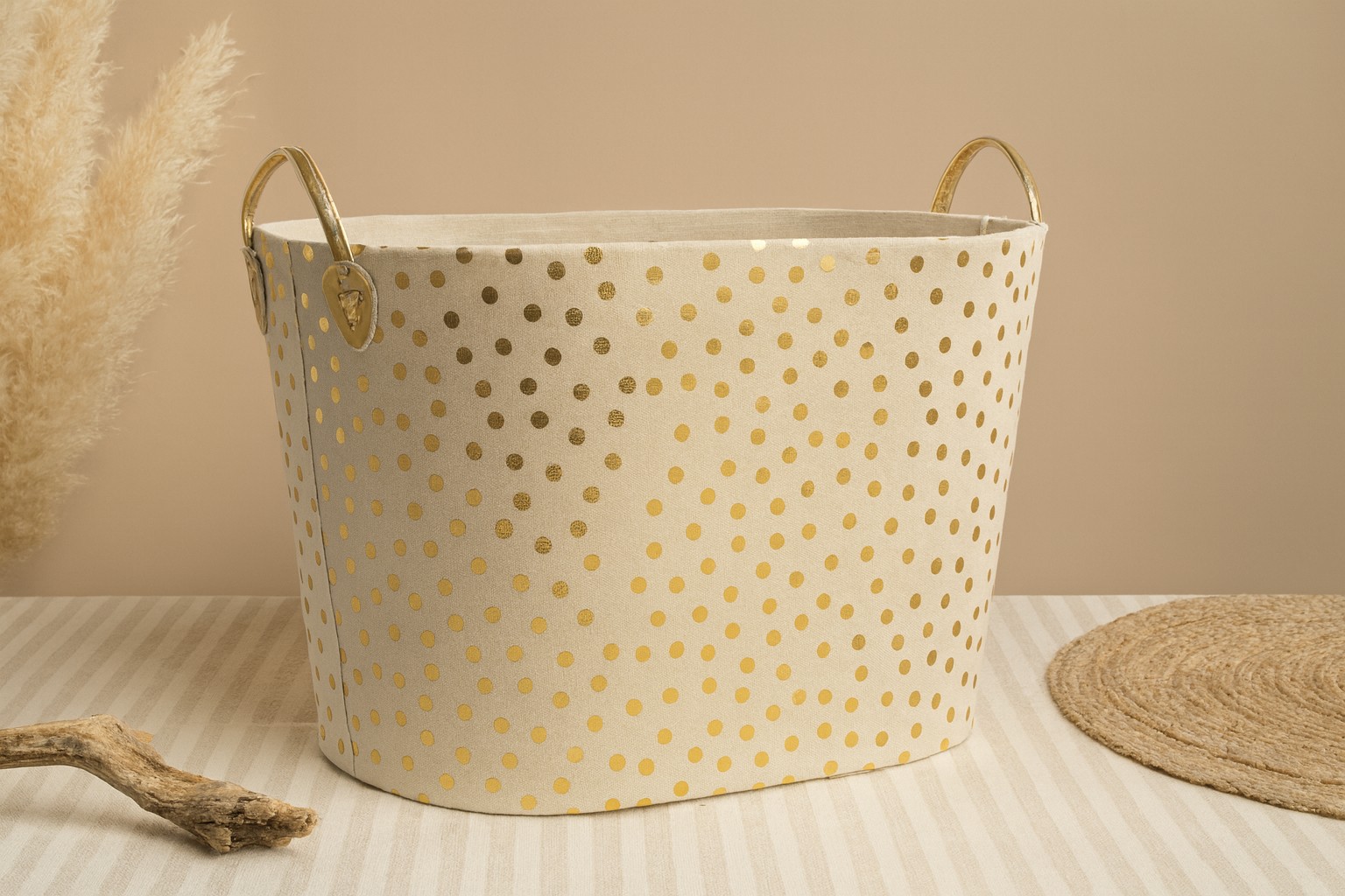 Добавьте блеска вашему интерьеру! ✨🌟 Эта элегантная корзина для белья или игрушек представляет собой идеальное сочетание функциональности и современного дизайна. 🧺 Она отличается модным узором в горошек и металлическими акцентами золотого или серебряного цвета, благодаря чему отлично вписывается как в минималистичные, так и в уютные интерьеры. 💛🤍 Это практичное решение, которое поможет вам поддерживать порядок и одновременно станет украшением вашего дома. 🏡🌿
