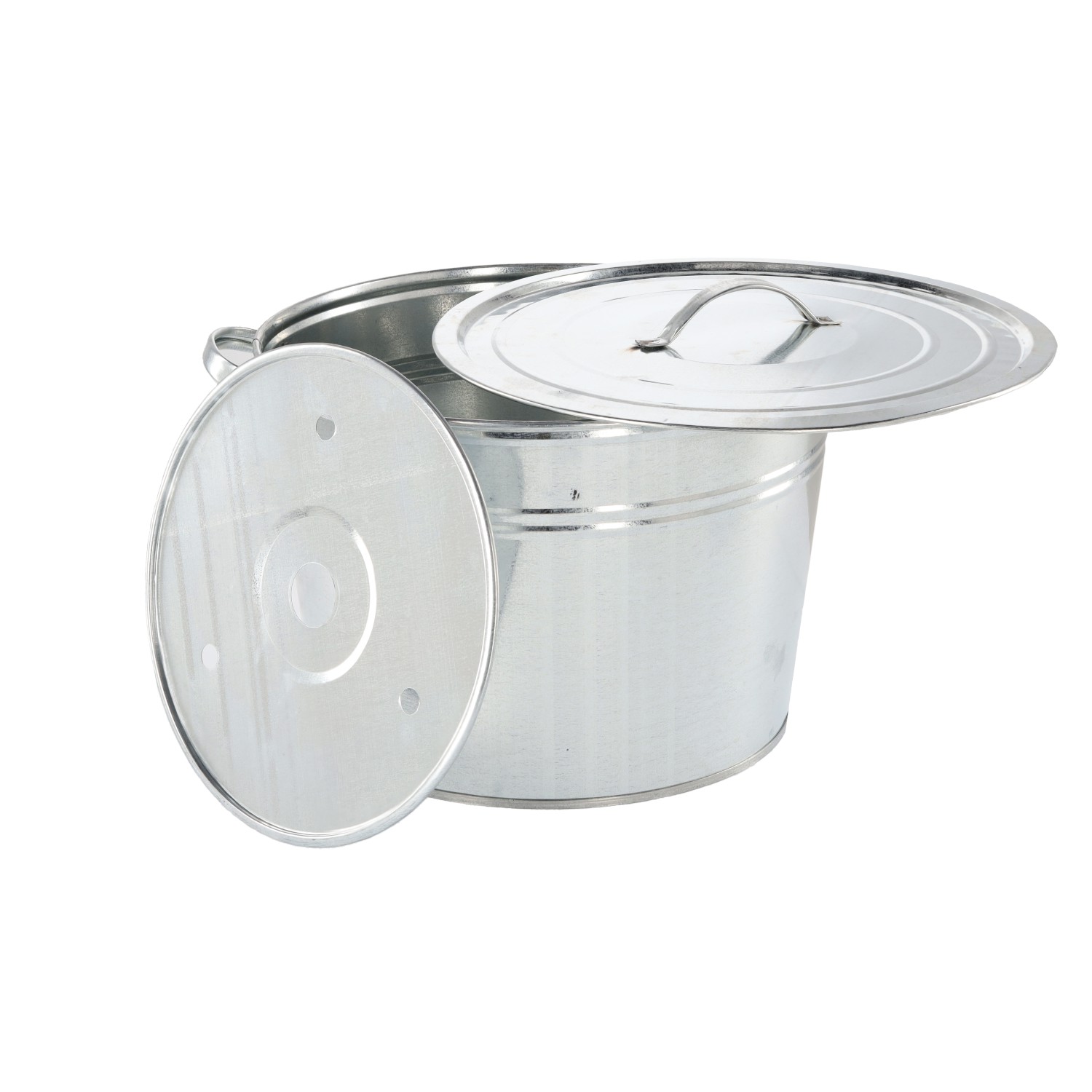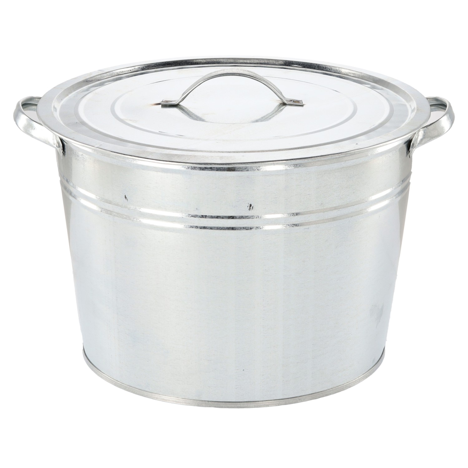 Котел изготовлен из оцинкованной стали, что защищает его от коррозии и позволяет хранить его на открытом воздухе. Стальной вкладыш с отверстиями, прилагаемый к котлу, гарантирует, что вареное содержимое не будет прилипать ко дну. Изделие оснащено двумя ручками, а комплект дополняет крышка.Котел может быть полезным инструментом в повседневных садовых работах. Традиционно его можно использовать для стирки или приготовления консервов (например, варки банок). Его внешний вид, напоминающий о былых временах, когда в подобных котлах варили белье, позволяет котлу успешно выполнять также декоративную функцию.