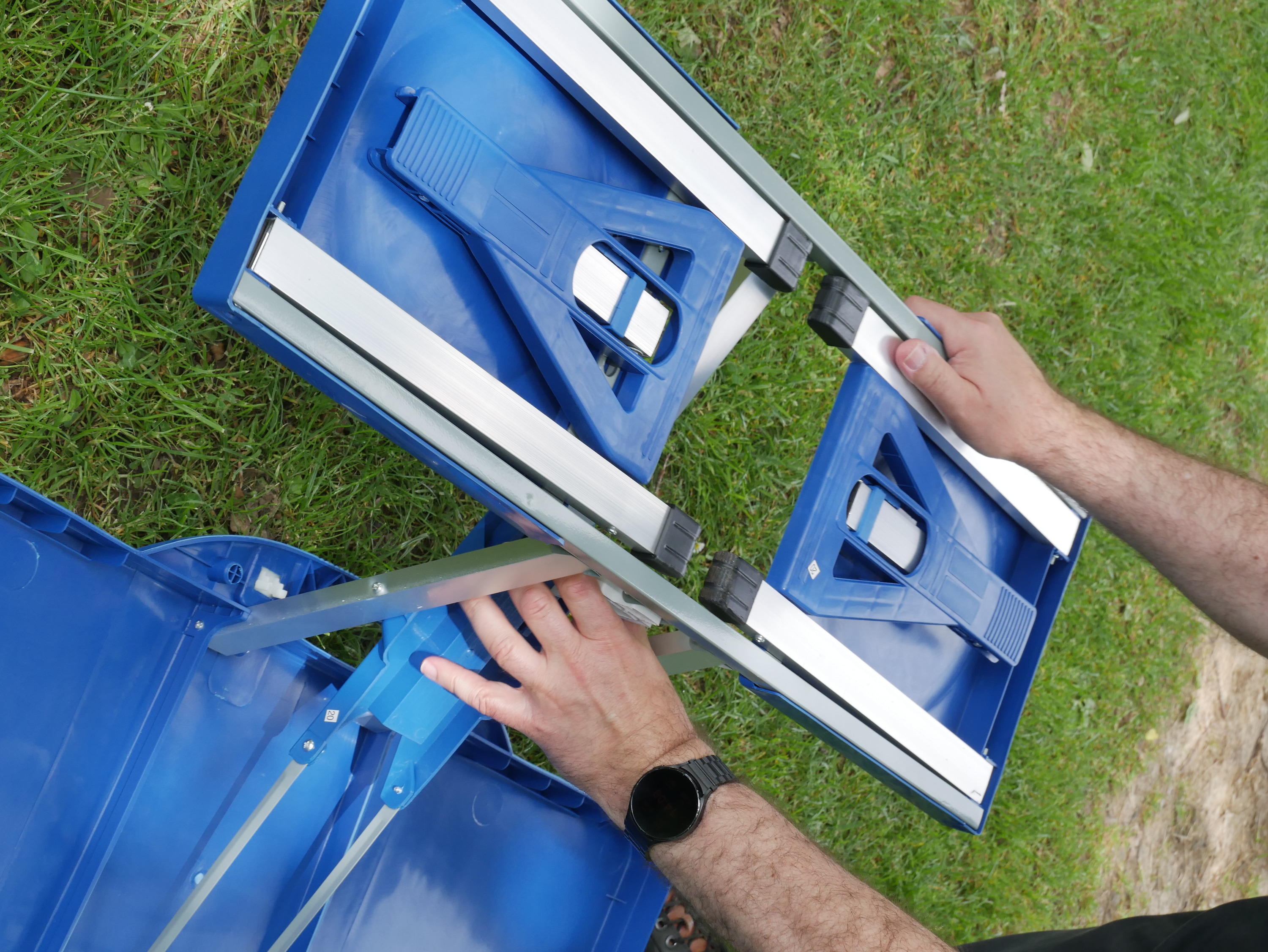Складной туристический столик с 4 табуретами изготовлен из высококачественных материалов (алюминий + ПВХ), что делает его исключительно прочным и устойчивым к любым погодным условиям. После складывания столика получается удобный для транспортировки чемодан. Столик имеет специальное углубление для зонта, что повышает комфорт использования в жаркие дни.