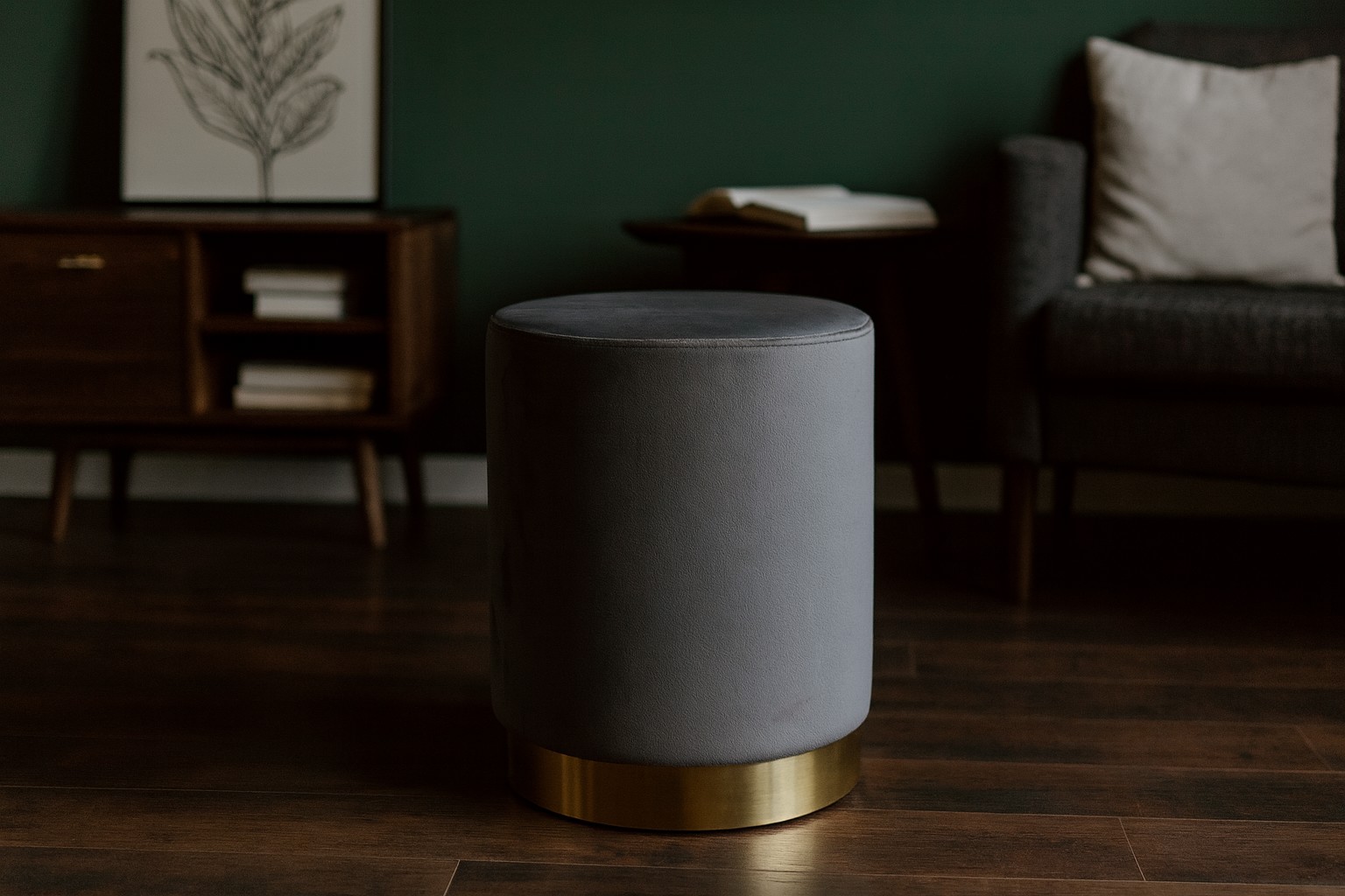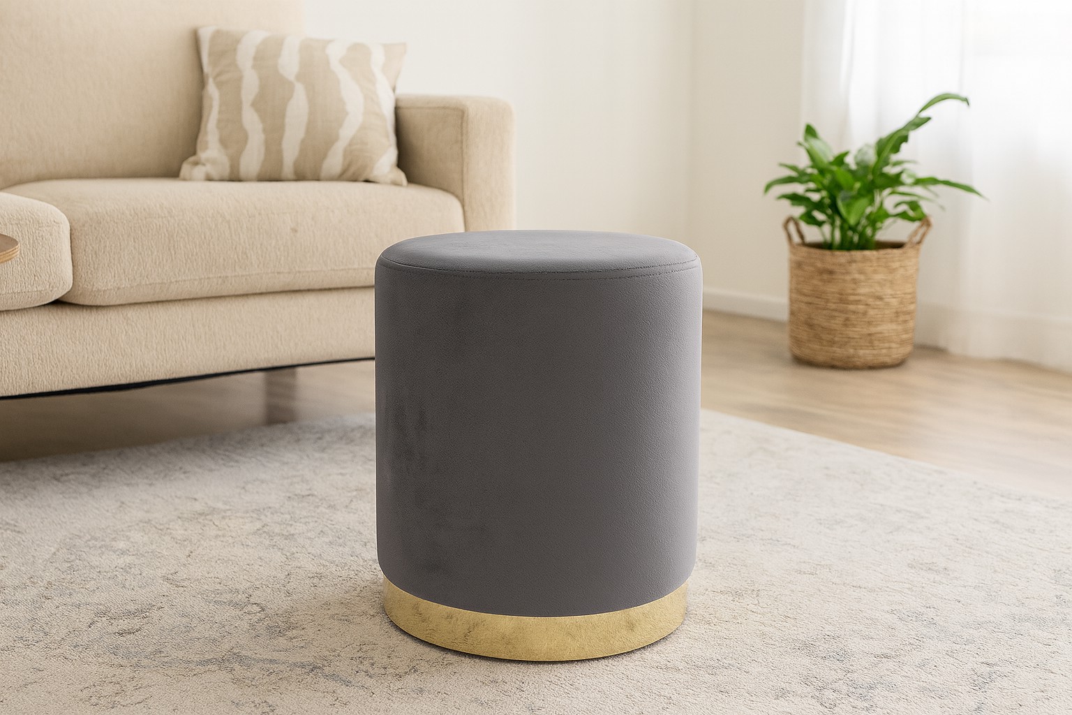 🌟 Стильный пуф серого цвета с золотой окантовкой ✨ – небольшой, но с характером! Идеально подходит в качестве сиденья 🪑, подножки 🦶 или декора 🏡 благодаря компактным размерам 📏 и выносливости до 80 кг 💎.