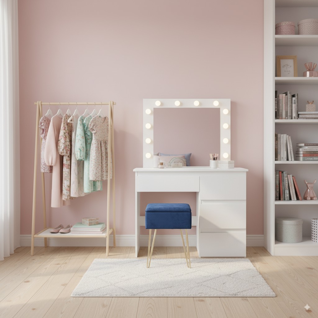 Косметический столик — этосочетание элегантности ипрактичности. Создан для женщин, которые ценят стиль,функциональность иудобство. Добавьте в свойинтерьернемного голливудского блеска инаслаждайтесьпространством, которое превратитповседневную рутину вуникальный ритуал.