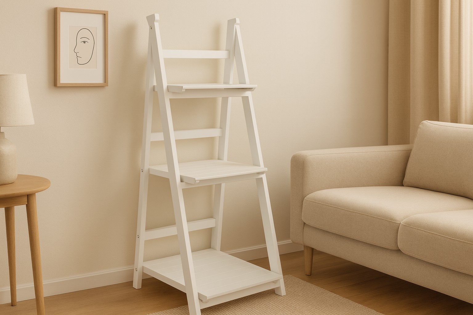 Вы ищете стильную и практичную мебель, которая не только вместит ваши вещи, но и украсит интерьер? 🌿 Лестничный стеллаж с 3 полками — отличное решение для гостиной, спальни, ванной комнаты или прихожей. Благодаря своей простой и в то же время элегантной форме он подходит для многих интерьеров — от скандинавского до современного. 🤍