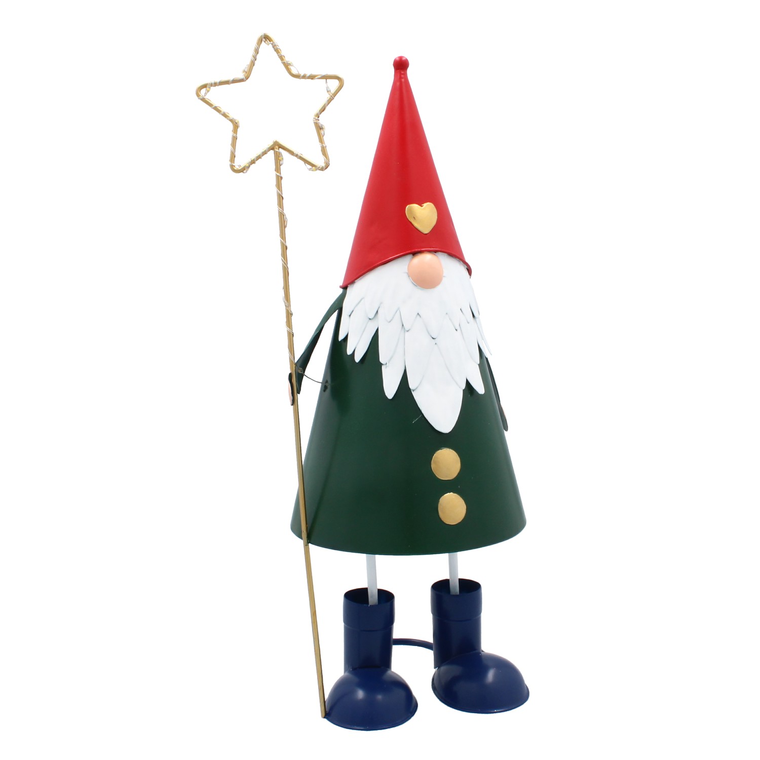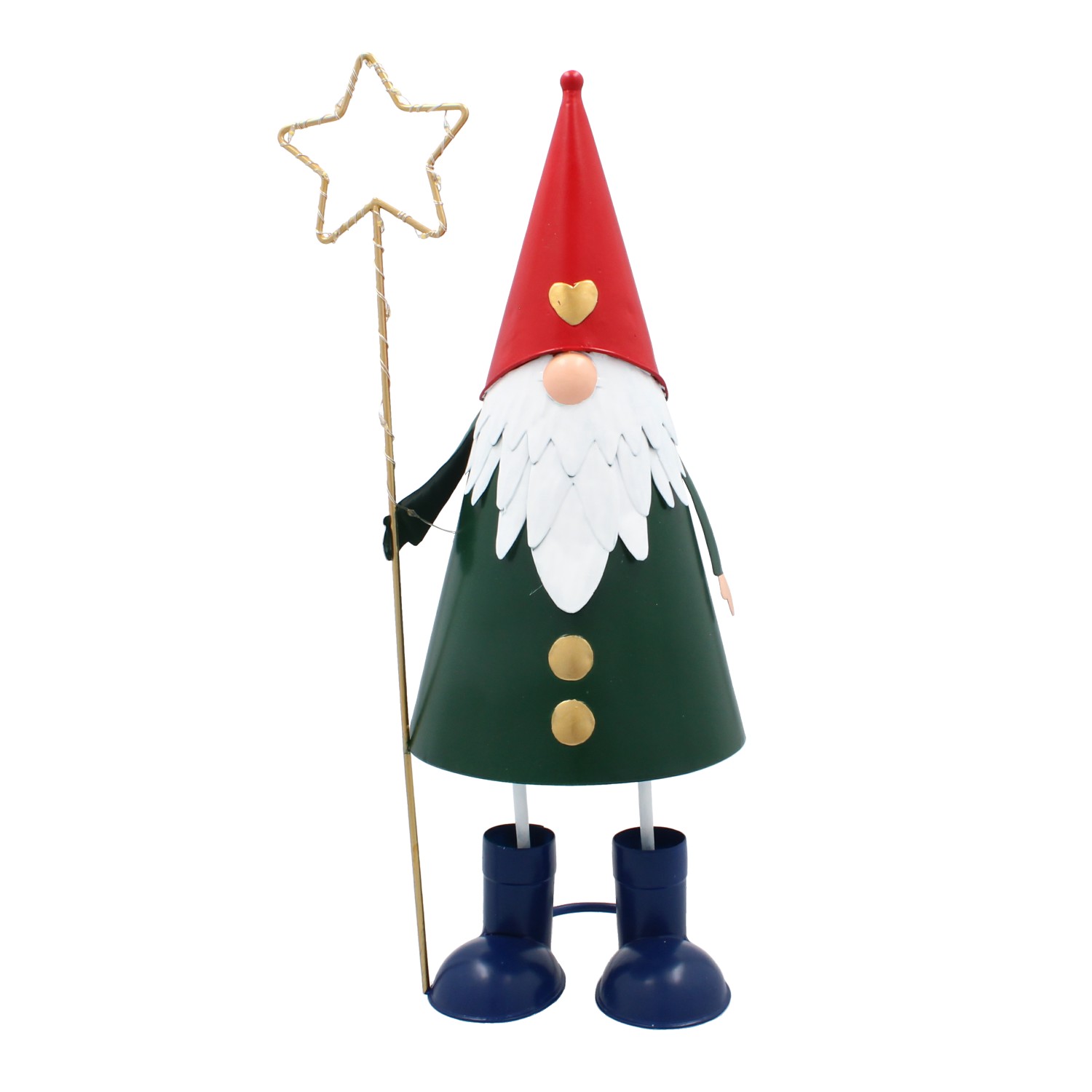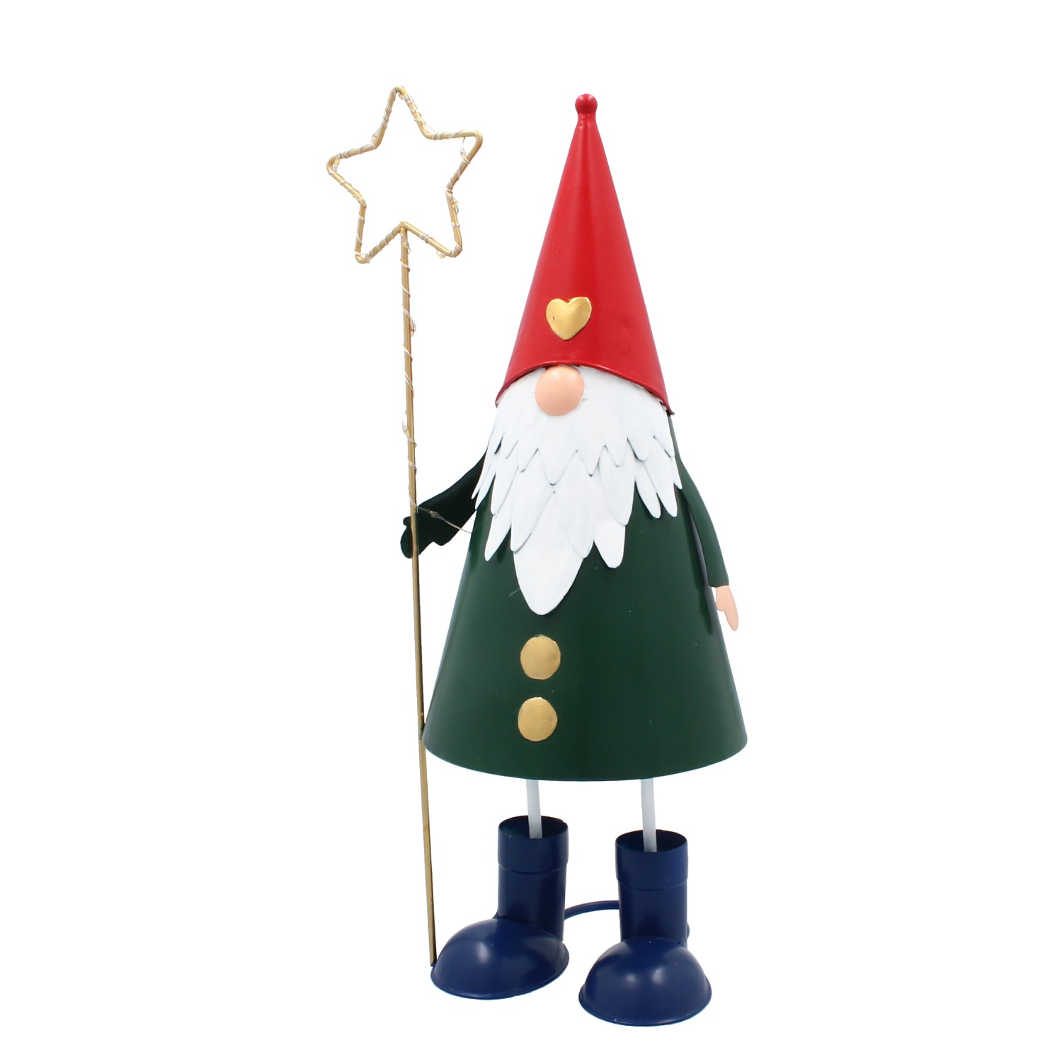 Приветствуйте праздники с размахом с нашим очаровательным металлическим гномом. Этот элегантный и прочный праздничный декор придаст любому интерьеру неповторимую, теплую атмосферу. Гномик со светодиодной звездой в руках - это сочетание классики и современности, идеально вписывающееся как в традиционные, так и в современные интерьеры. Это украшение, которое деликатно осветит ваше пространство и добавит ему праздничной магии.