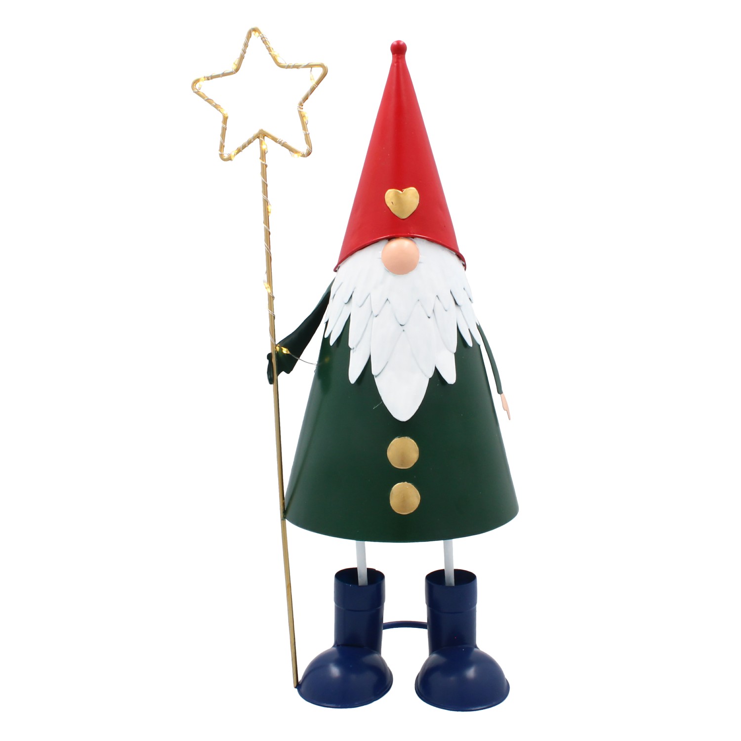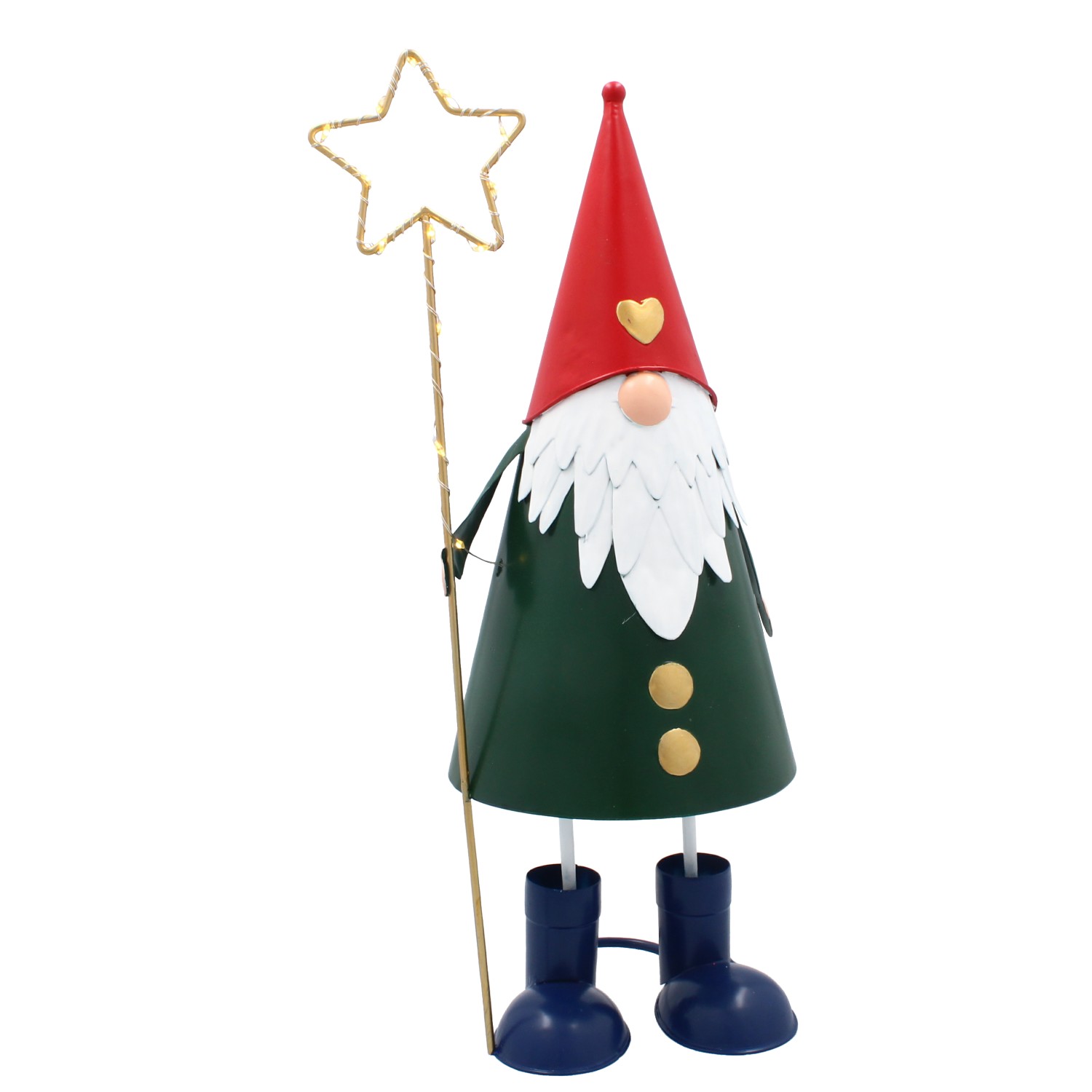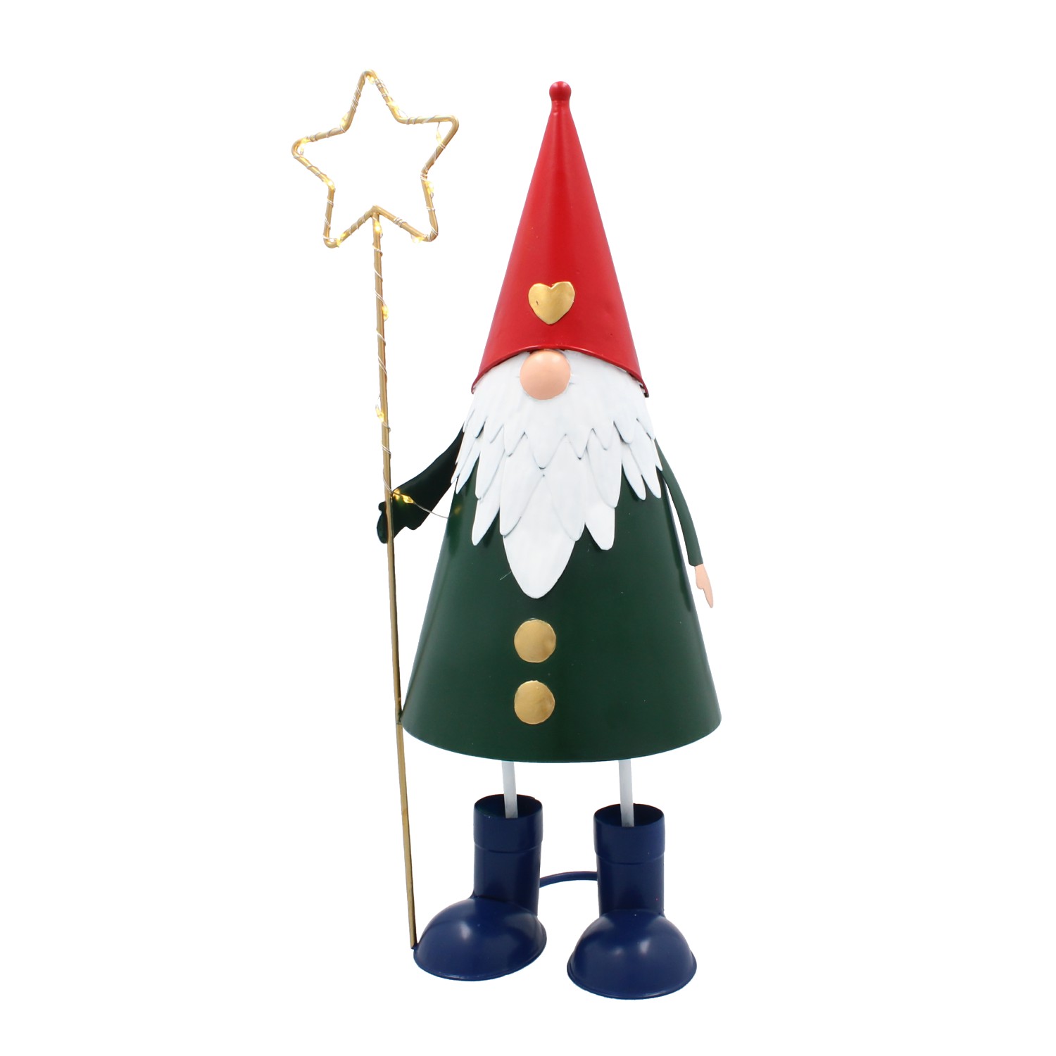 Приветствуйте праздники с размахом с нашим очаровательным металлическим гномом. Этот элегантный и прочный праздничный декор придаст любому интерьеру неповторимую, теплую атмосферу. Гномик со светодиодной звездой в руках - это сочетание классики и современности, идеально вписывающееся как в традиционные, так и в современные интерьеры. Это украшение, которое деликатно осветит ваше пространство и добавит ему праздничной магии.