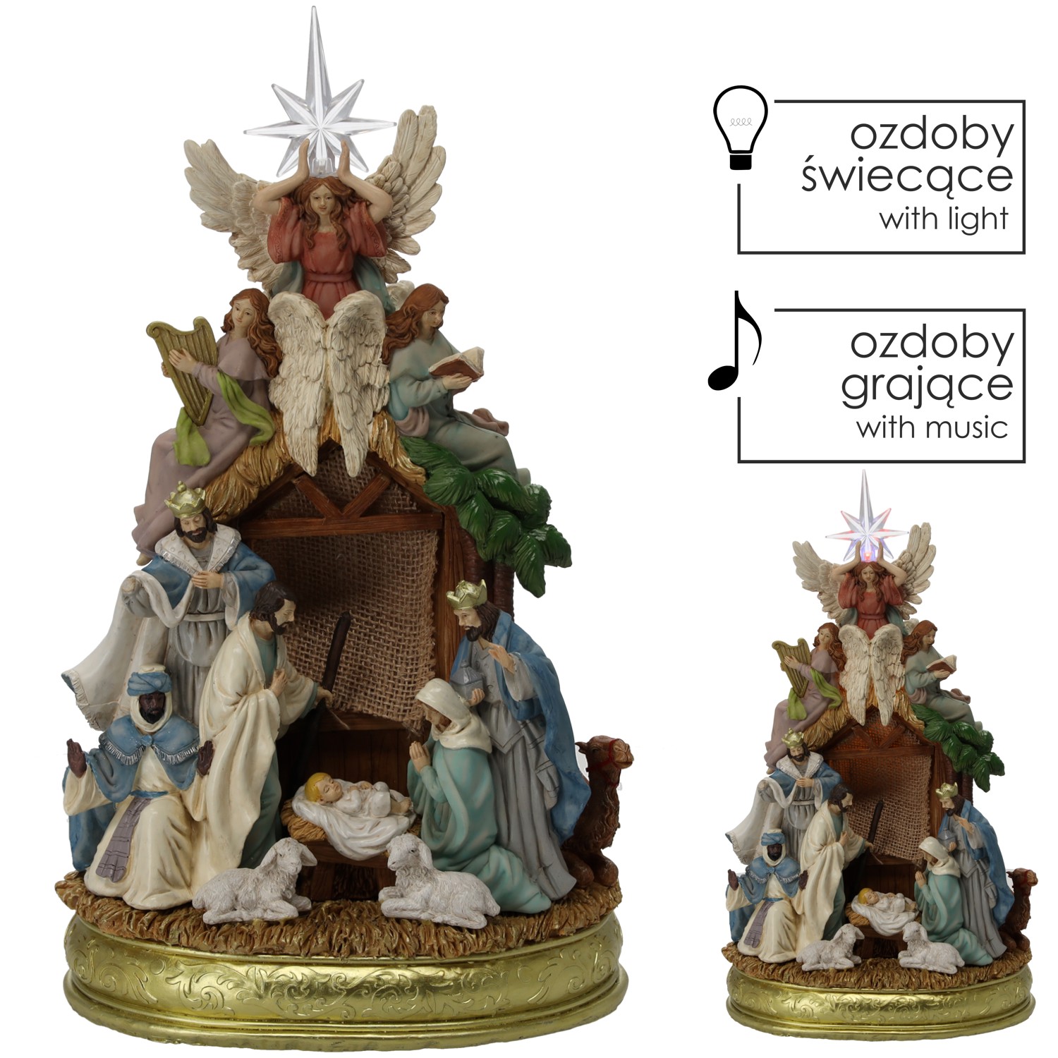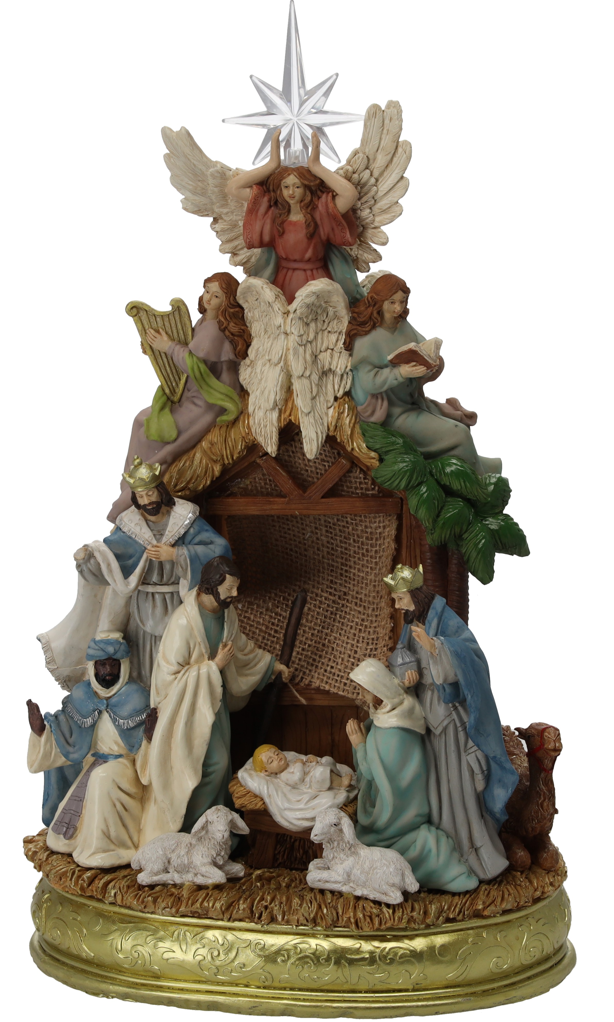 Рождественский вертеп излучает спокойствие, красоту и символизм – меняющая цвета звезда Вифлеема и тихая мелодия на фоне напоминают о важнейших ценностях этого праздника.
