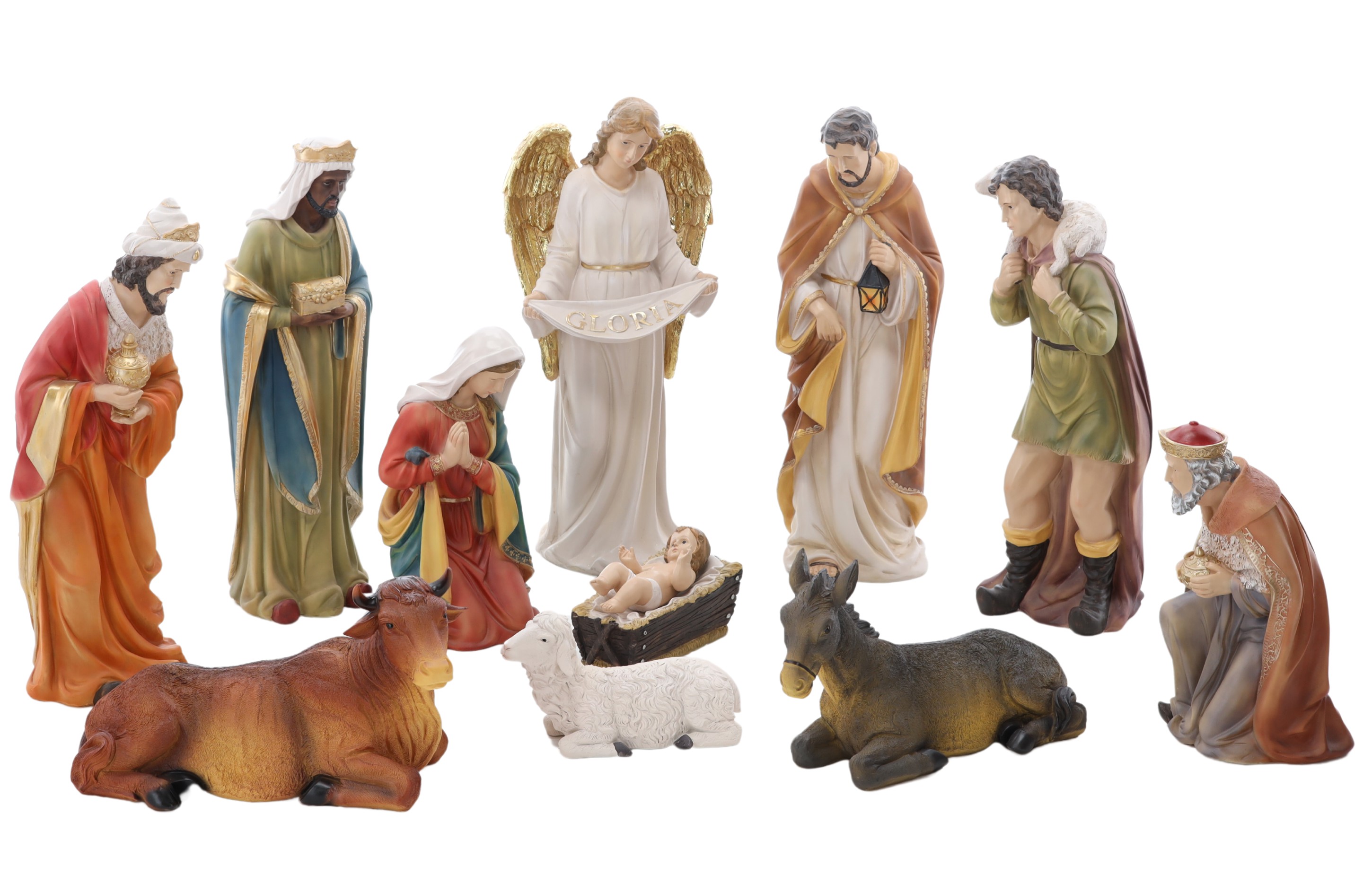 Набор из 11 больших фигур сочетает в себе традиции и надежное исполнение. С их помощью вы сможете создать рождественский вертеп, который порадует семью, гостей, прихожан или прохожих, привнося магию и тепло Рождества.