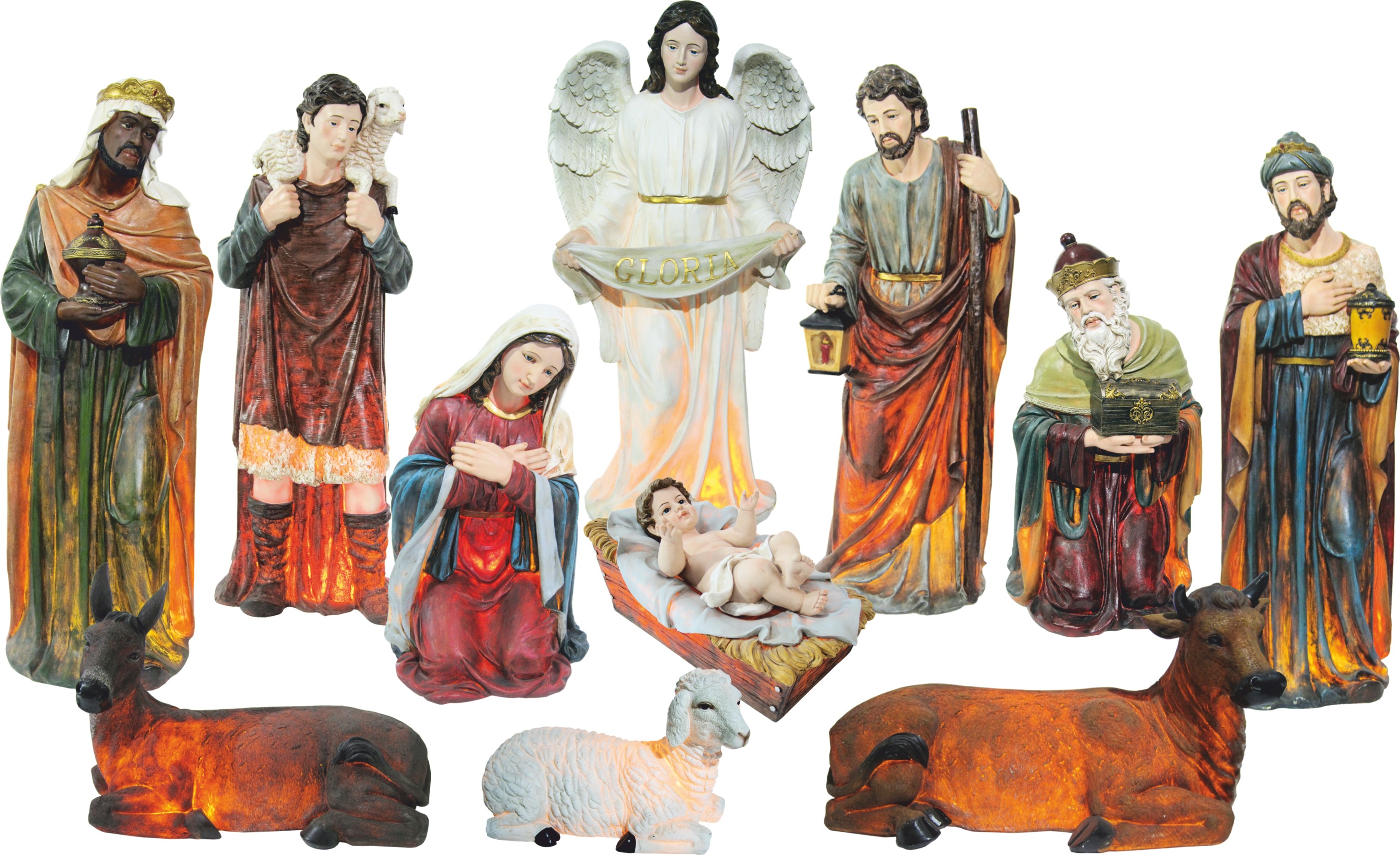 Создайте уникальную и торжественную атмосферу Рождества благодаря набору из 11 фигурок с подсветкой, изготовленных из высококачественной эпоксидной смолы. В комплект входят все основные персонажи рождественской сцены: Младенец Иисус, Мария, Иосиф, Ангел, Три Царя, Пастух и животные. Это классический набор, который позволит создать красивый и гармоничный рождественский вертеп.