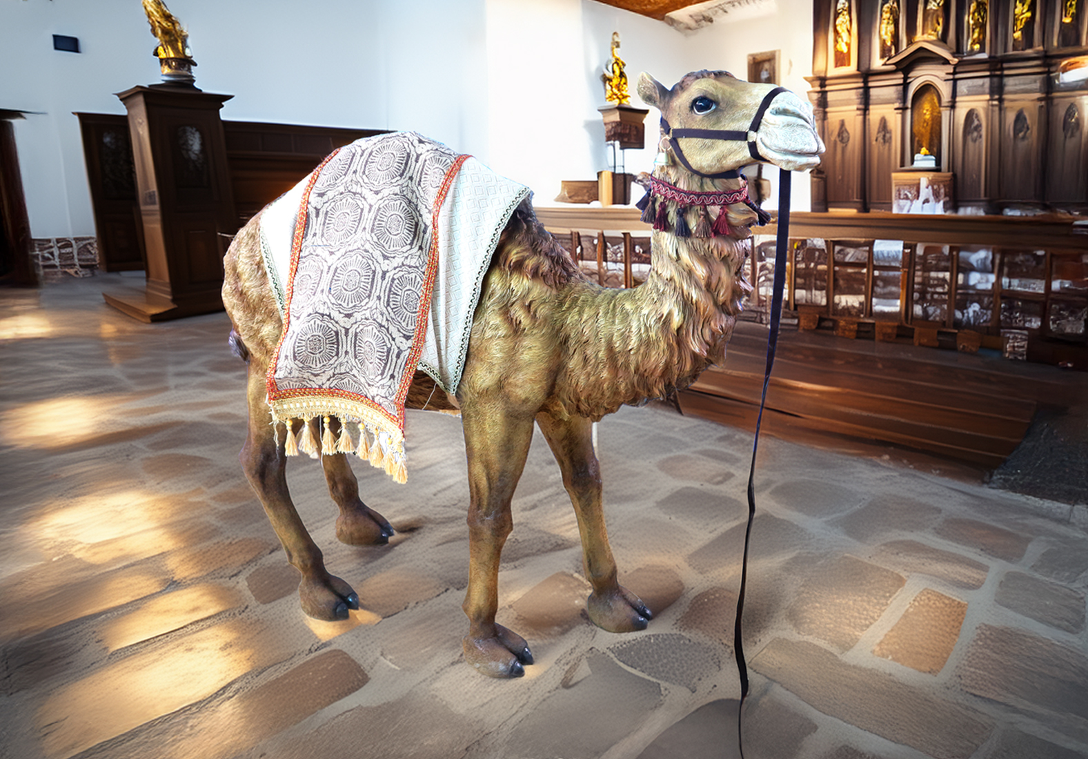 Добавьте в свою рождественскую композицию атмосферу Востока с помощью реалистичной фигуры верблюда высотой 107 см. Это уникальное украшение, которое поражает своей естественностью и вниманием к каждой детали.