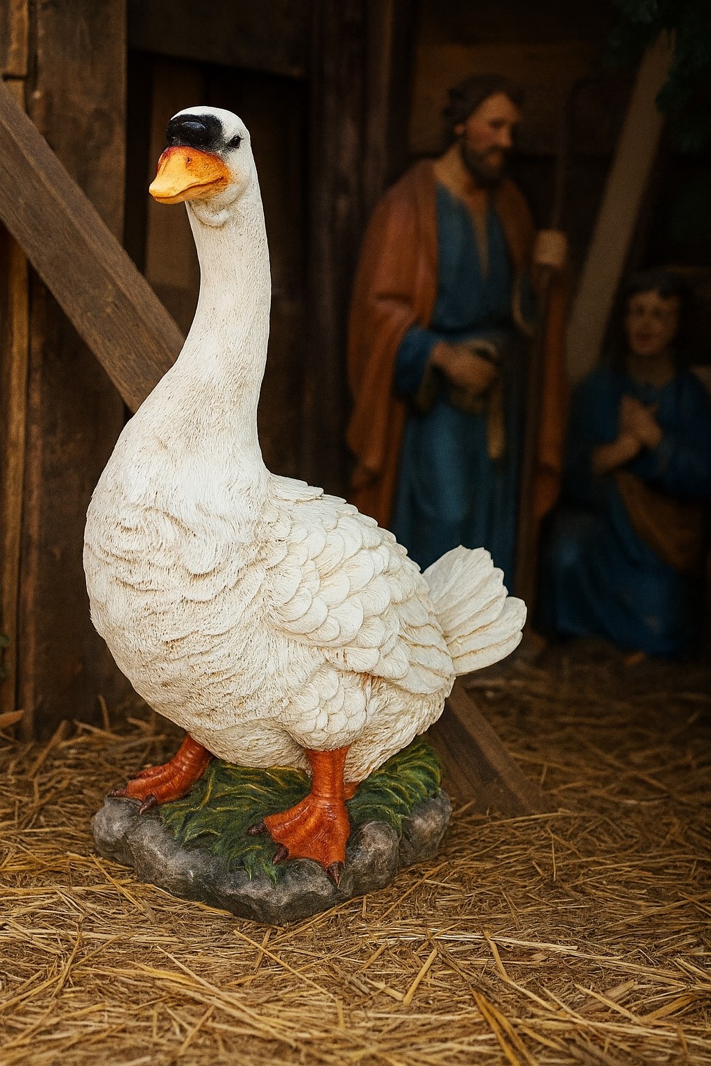 Добавьте особый шарм 🎄✨ своему рождественскому вертепу благодаря реалистичной фигурке гуся 🪶 высотой 51 см. Это деталь, которая 👀 привлекает внимание и подчеркивает аутентичность всей композиции 🌟.