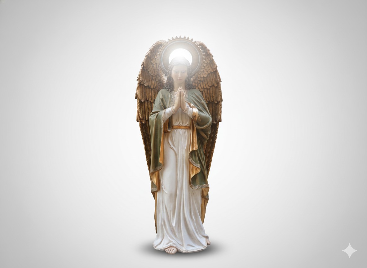 👼 Что входит в комплект и что предлагается:Эта впечатляющая фигура ангела выполнена с необычайной точностью — от тонко сложенных рук в жесте молитвы до реалистичных складок одежды в оттенках белого, зеленого и золотого. Это украшение, которое сразу привлекает внимание и создает атмосферу спокойствия, духовной глубины и праздничного тепла. 🌟