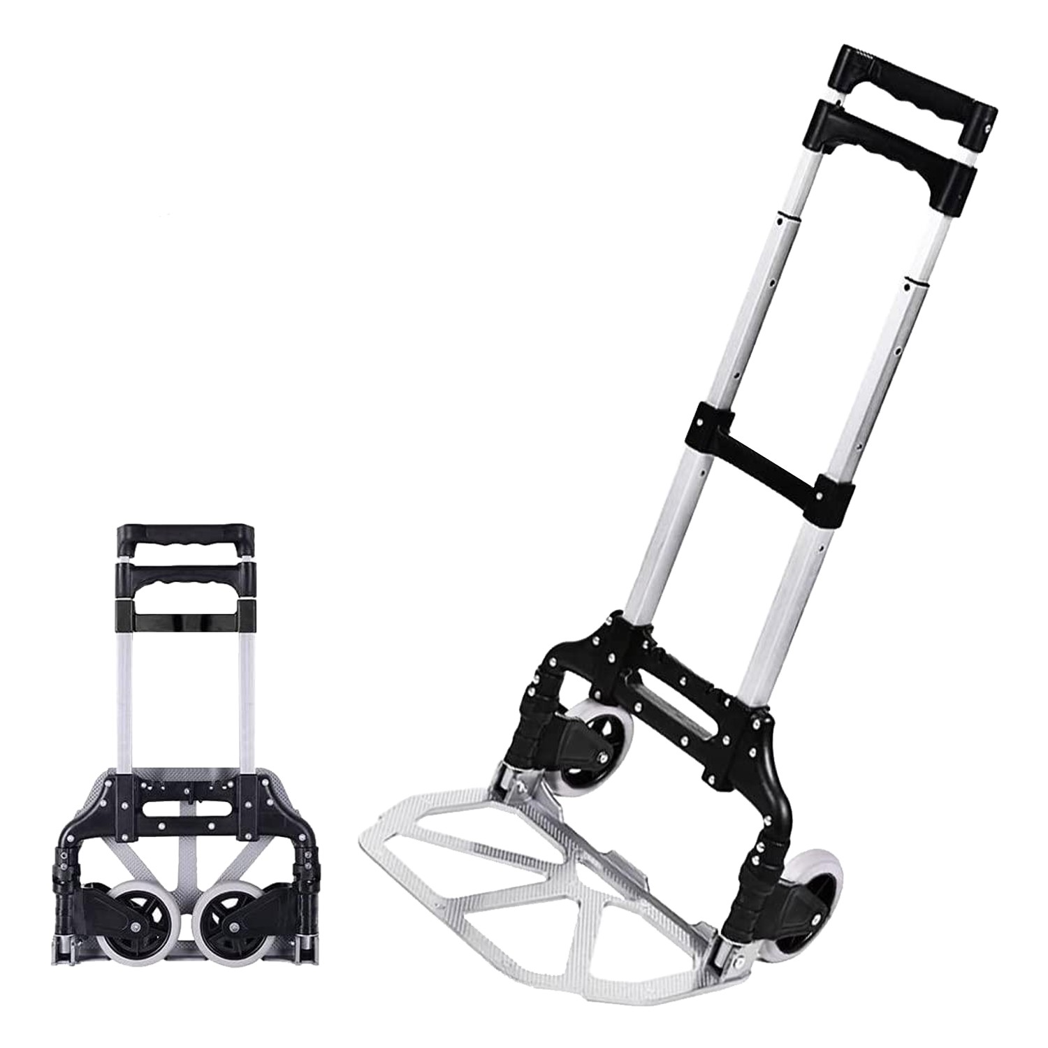 Складная тележка для перевозки грузов была разработана для удобной перевозки тяжелых грузов, а ее компактная конструкция позволяет удобно хранить ее в небольших помещениях. Прочная алюминиевая конструкция гарантирует долговечность, легкость и удобство использования. В комплект входит эластичная резиновая лента, которая помогает надежно закрепить перевозимые предметы.