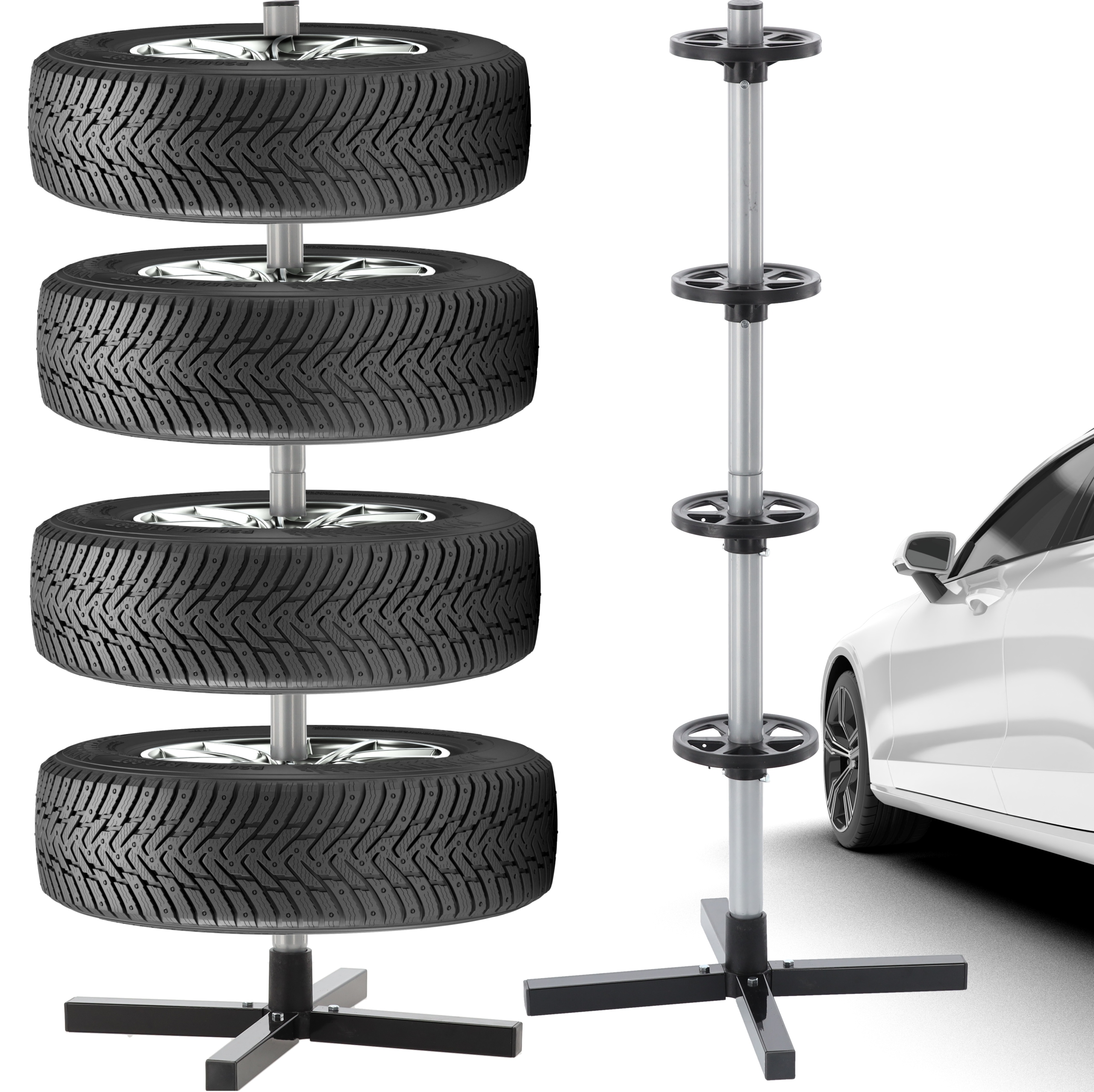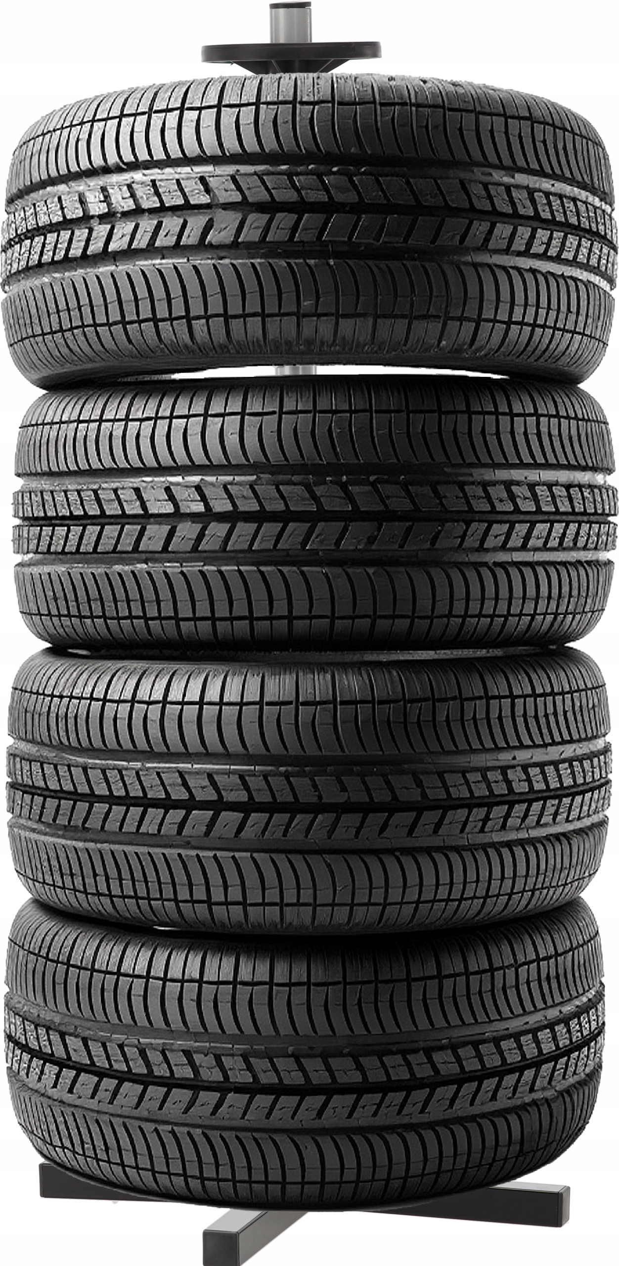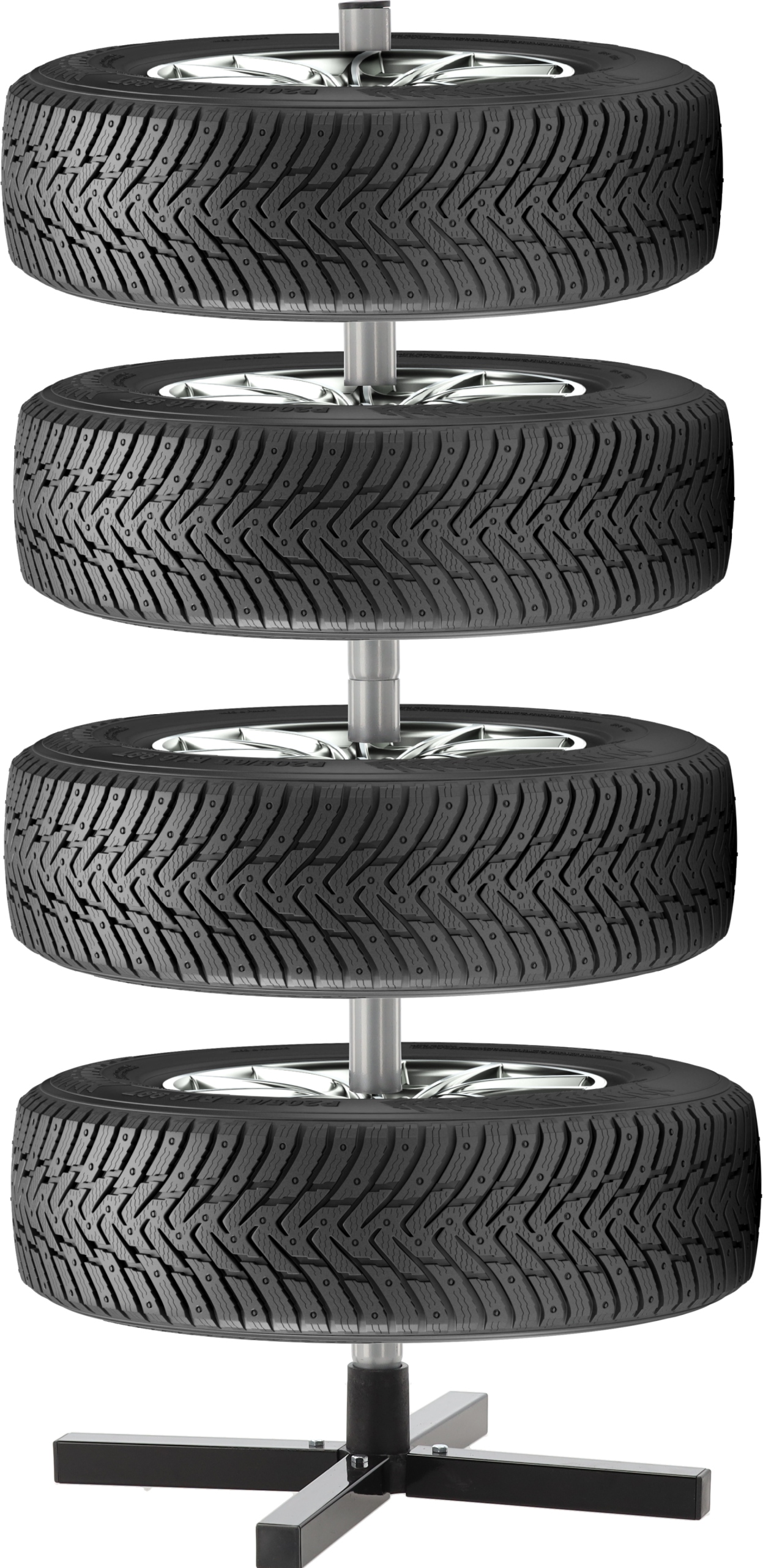 Стойка подходит для хранения шин разных диаметров и ширины, что делает ее идеальной как для легковых автомобилей, так и для небольших внедорожников.