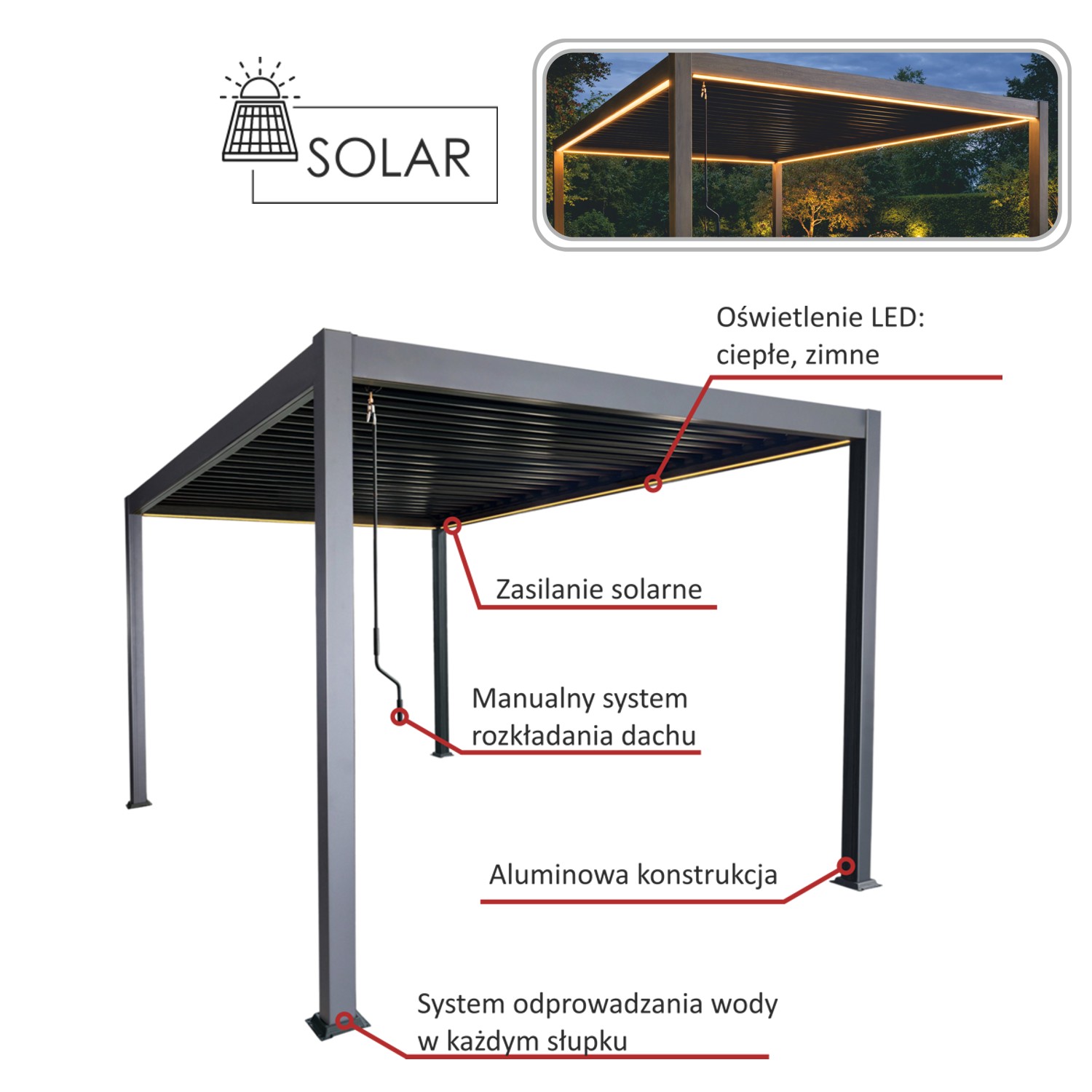 Современная биоклиматическая пергола – это сочетание элегантного дизайна, функциональности и инновационных решений, которые преобразят Ваш сад. Благодаря регулируемой ламельной крыше, светодиодному освещению на солнечной энергии и прочной алюминиевой конструкции пергола обеспечивает комфорт использования в течение всего сезона – днем и вечером ✨