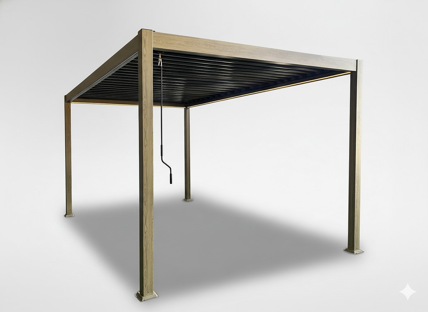 Элегантная алюминиевая пергола представляет собой идеальное сочетание современного дизайна, функциональности и комфорта в использовании 🌿✨. Созданная специально для террас и садов, она обеспечивает приятную тень в солнечные дни и создает неповторимую атмосферу после захода солнца благодаря встроенному светодиодному освещению, питающемуся от солнечной энергии ☀️💡. Прочная конструкция и стильная отделка под дерево позволяют перголе гармонично вписаться в любое пространство.