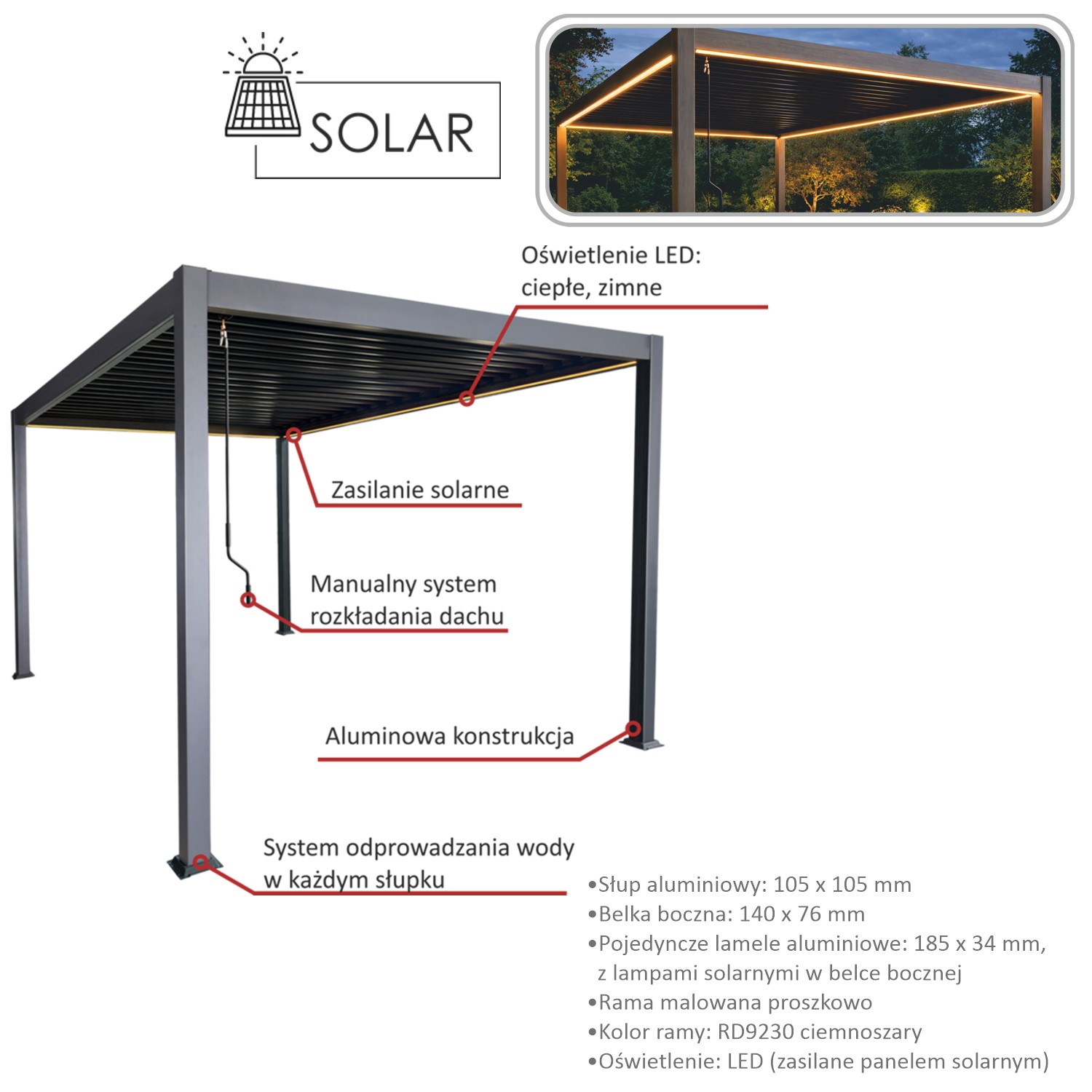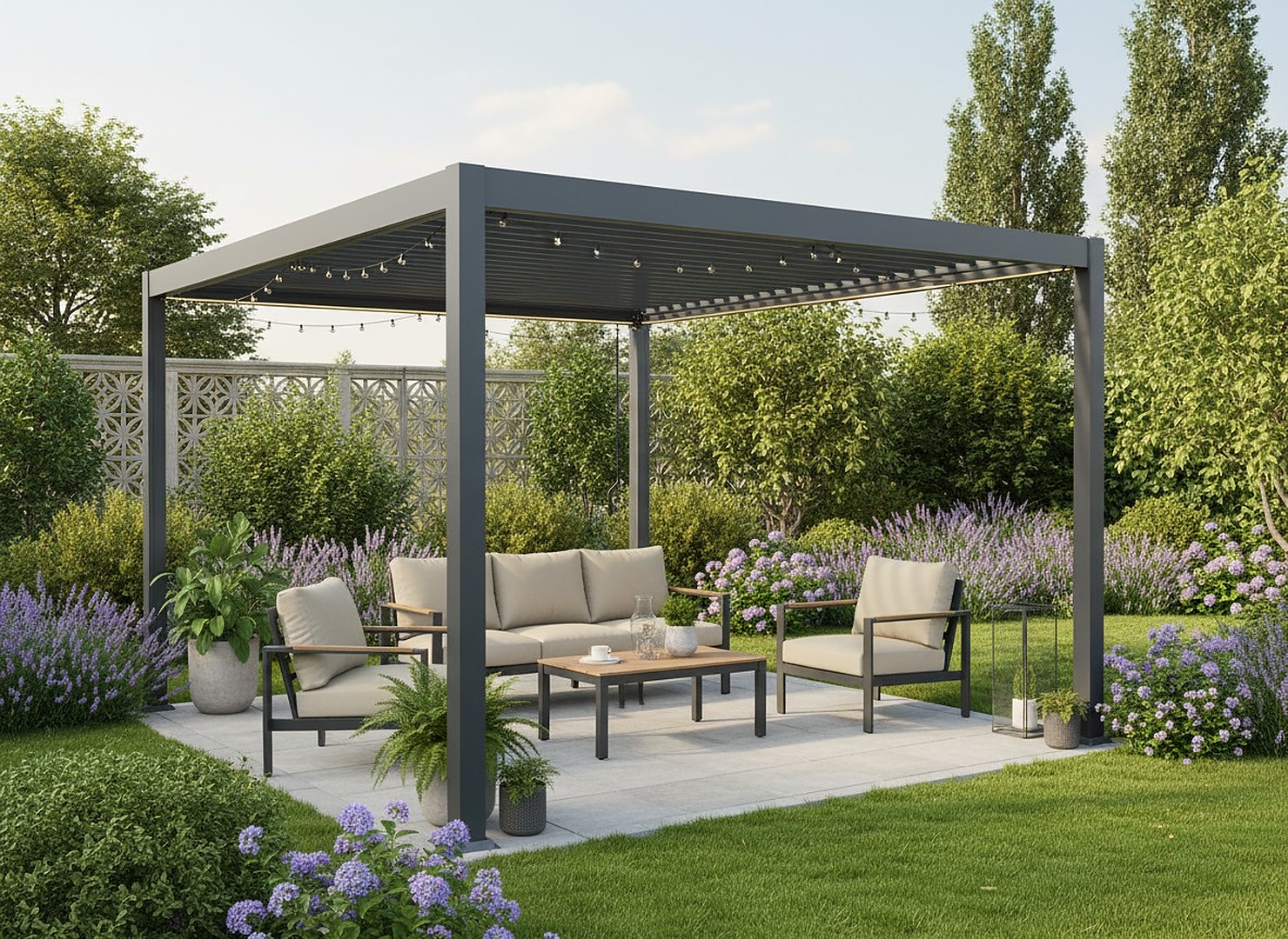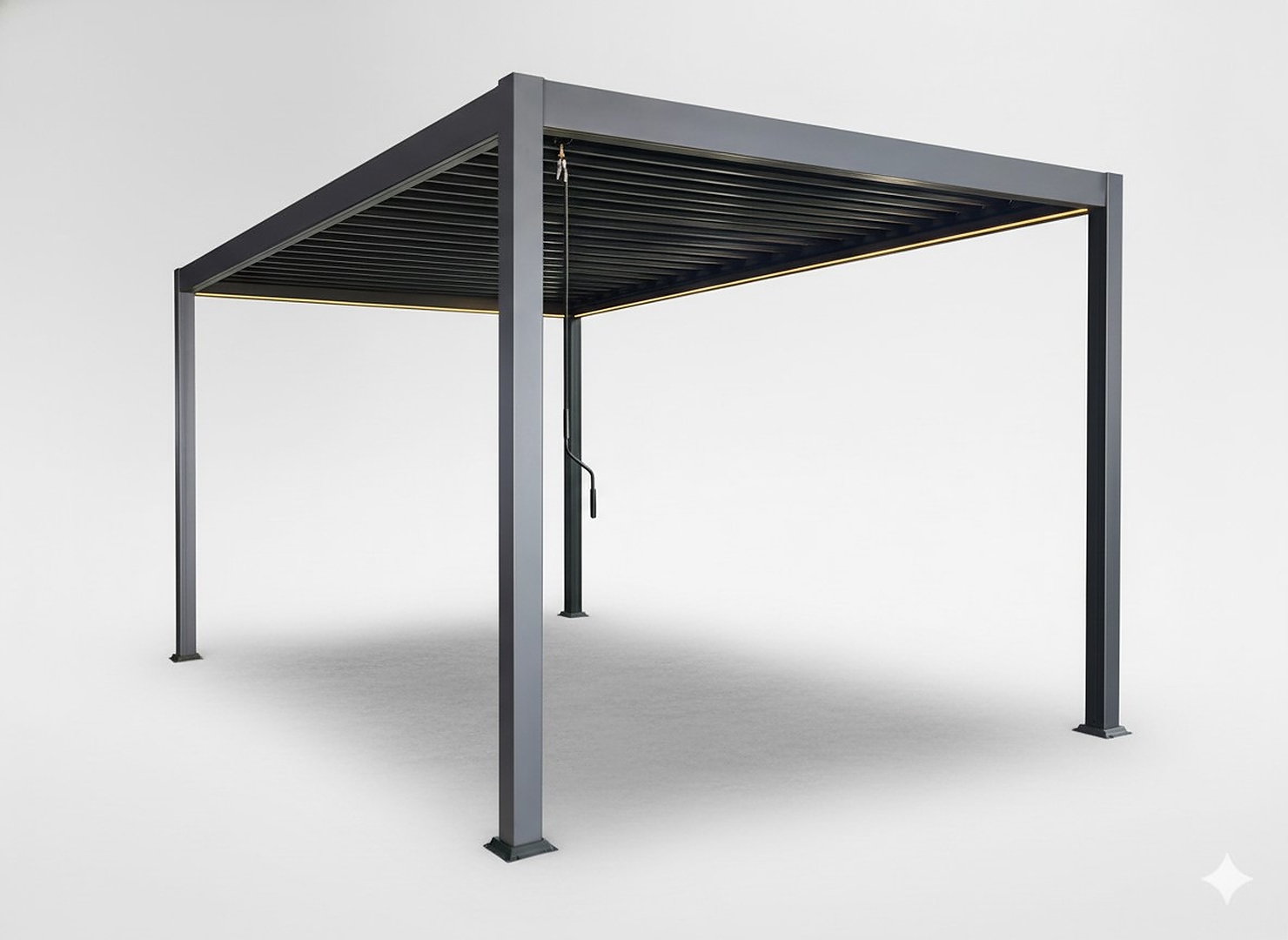 Современная биоклиматическая пергола – это сочетание элегантного дизайна, функциональности и инновационных решений, которые преобразят Ваш сад. Благодаря регулируемой ламельной крыше, светодиодному освещению на солнечных батареях и прочной алюминиевой конструкции пергола обеспечивает комфорт использования в течение всего сезона – днем и вечером ✨