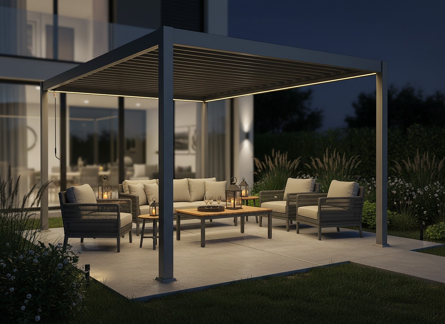Вы получаете стильное место для отдыха, защиту от солнца и дождя, а также неповторимую атмосферу после захода солнца 🌙 Пергола повышает эстетику сада и реально увеличивает комфорт повседневного использования террасы. Это функциональность, которая идет рука об руку с элегантностью — на долгие годы.