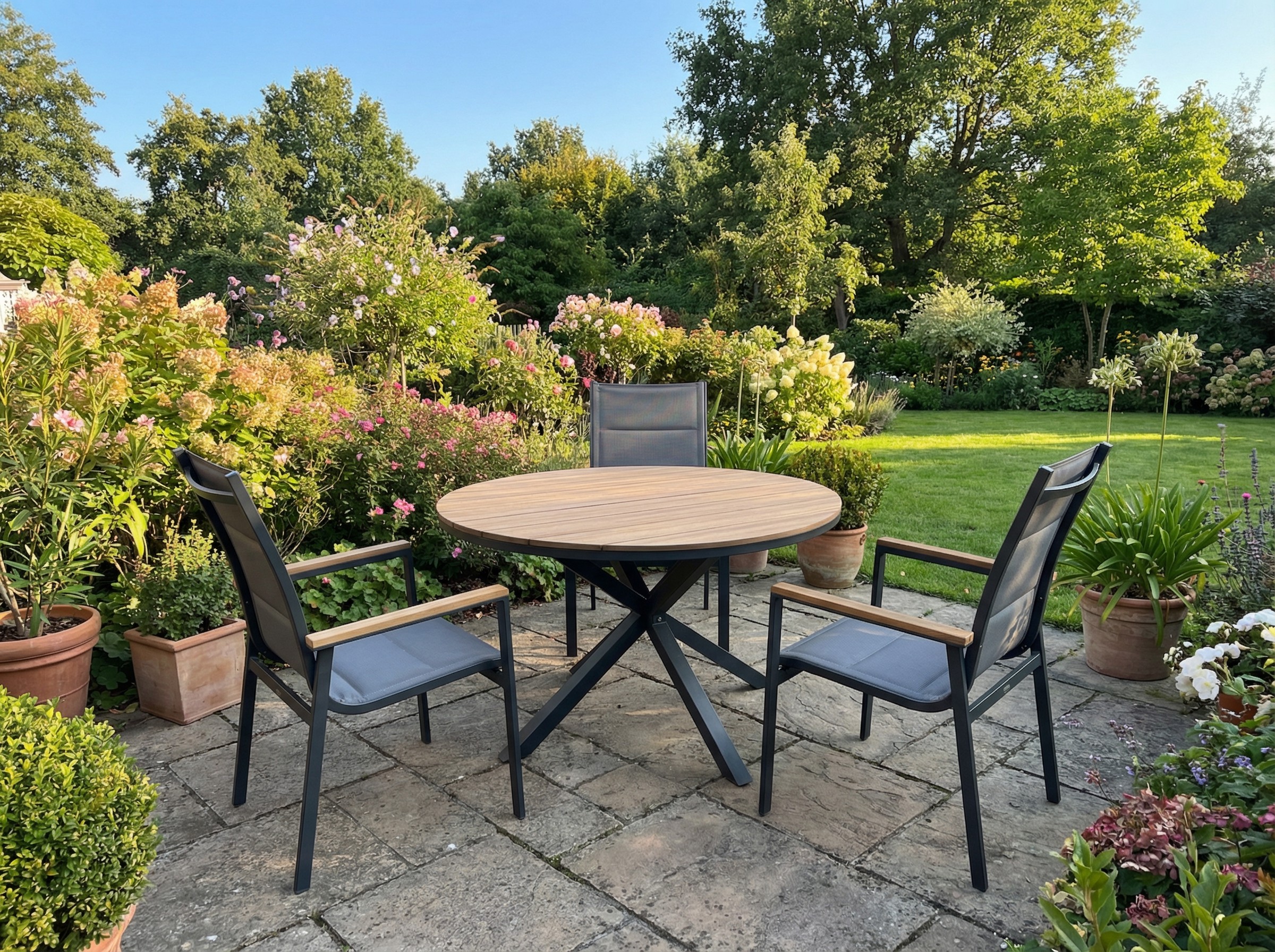 Современный темно-серый цвет – подходит к большинству столов и садовых комплектов