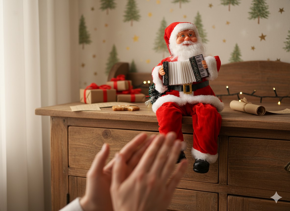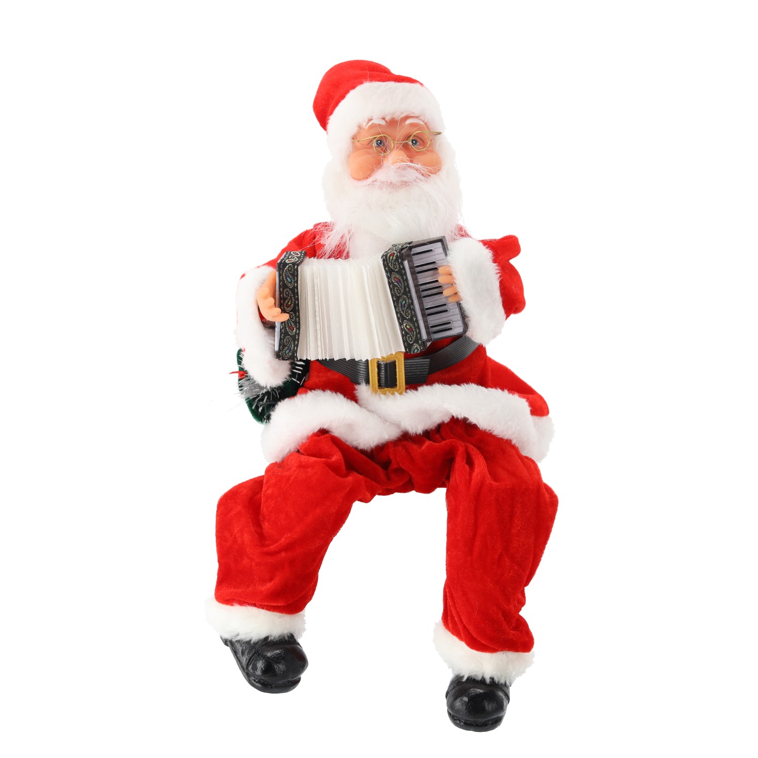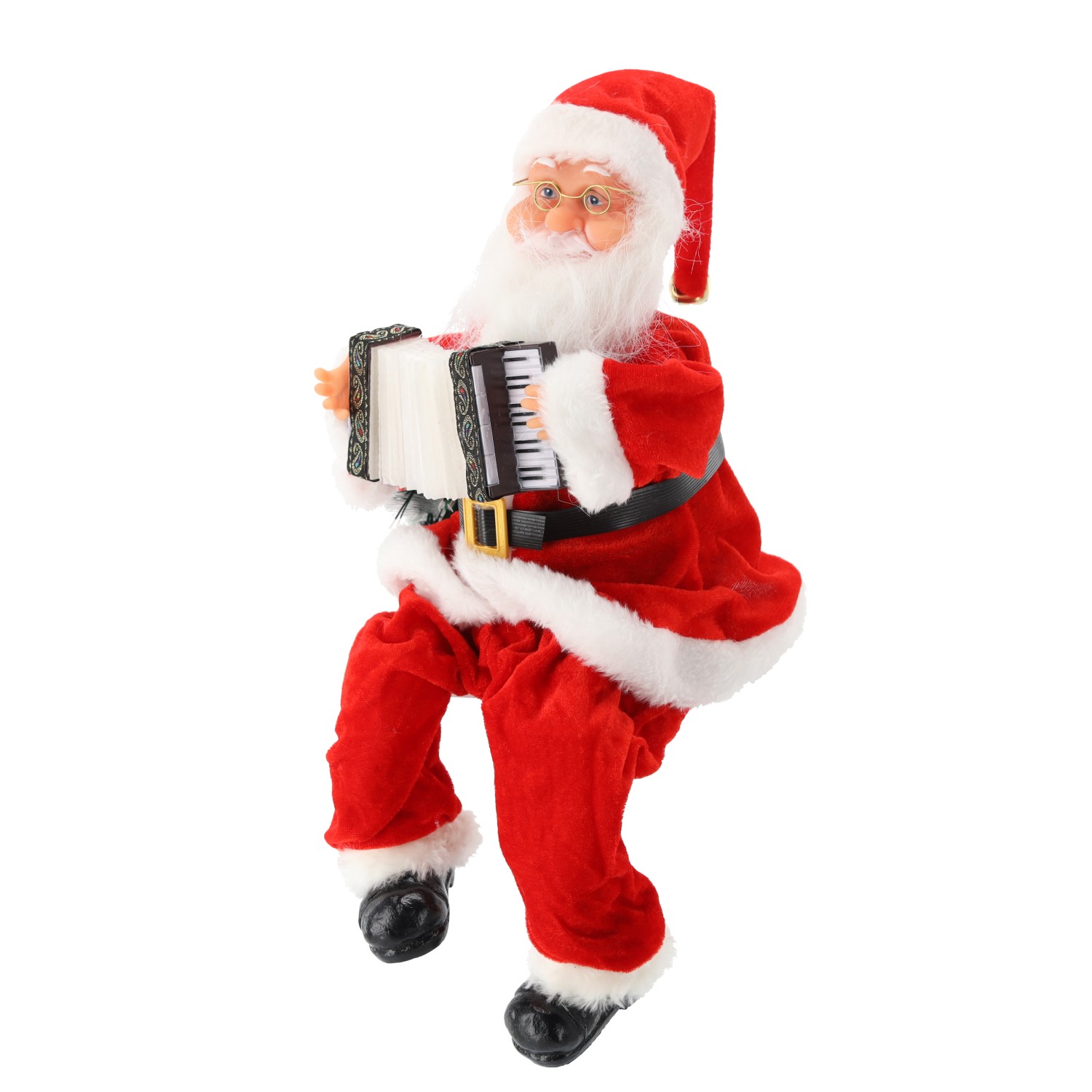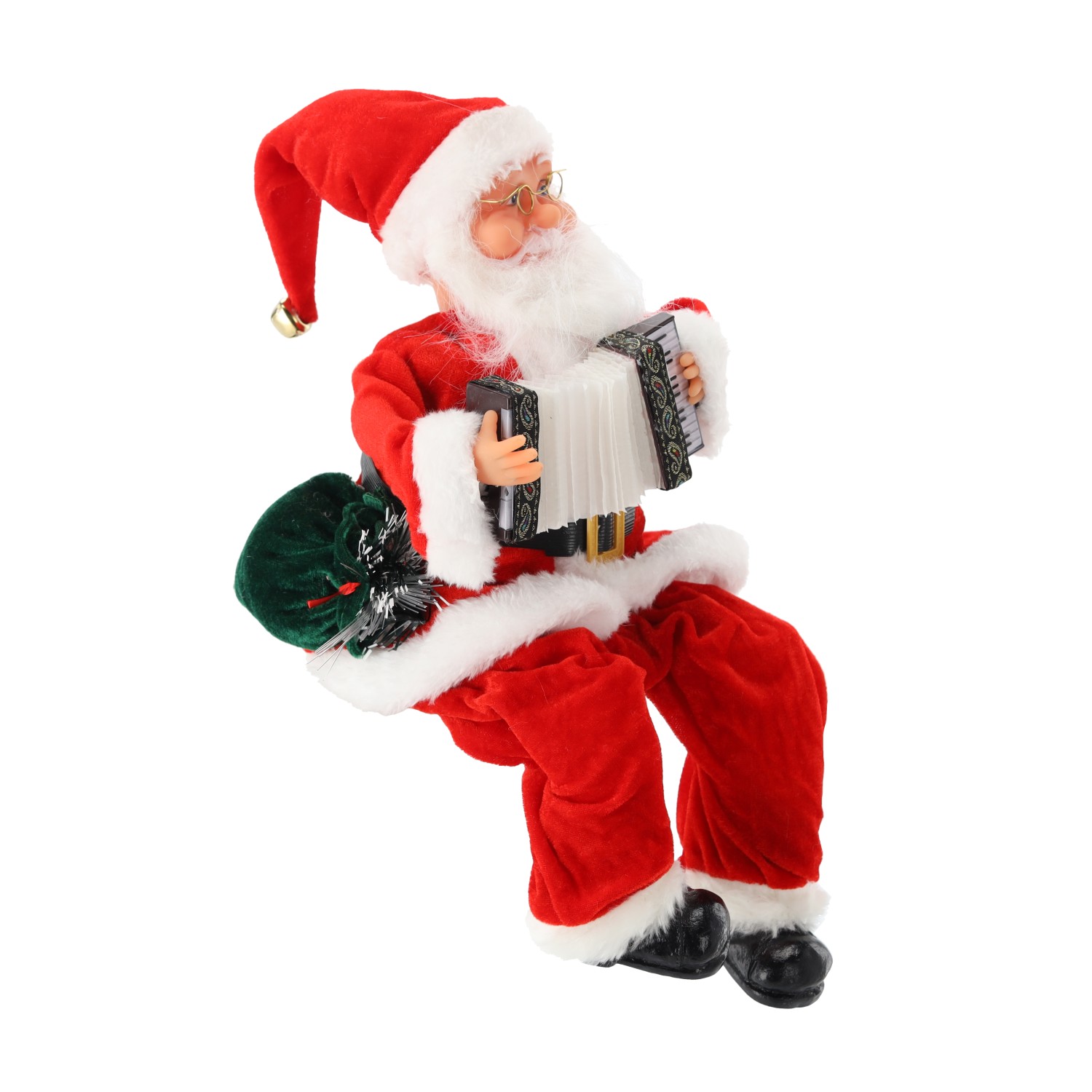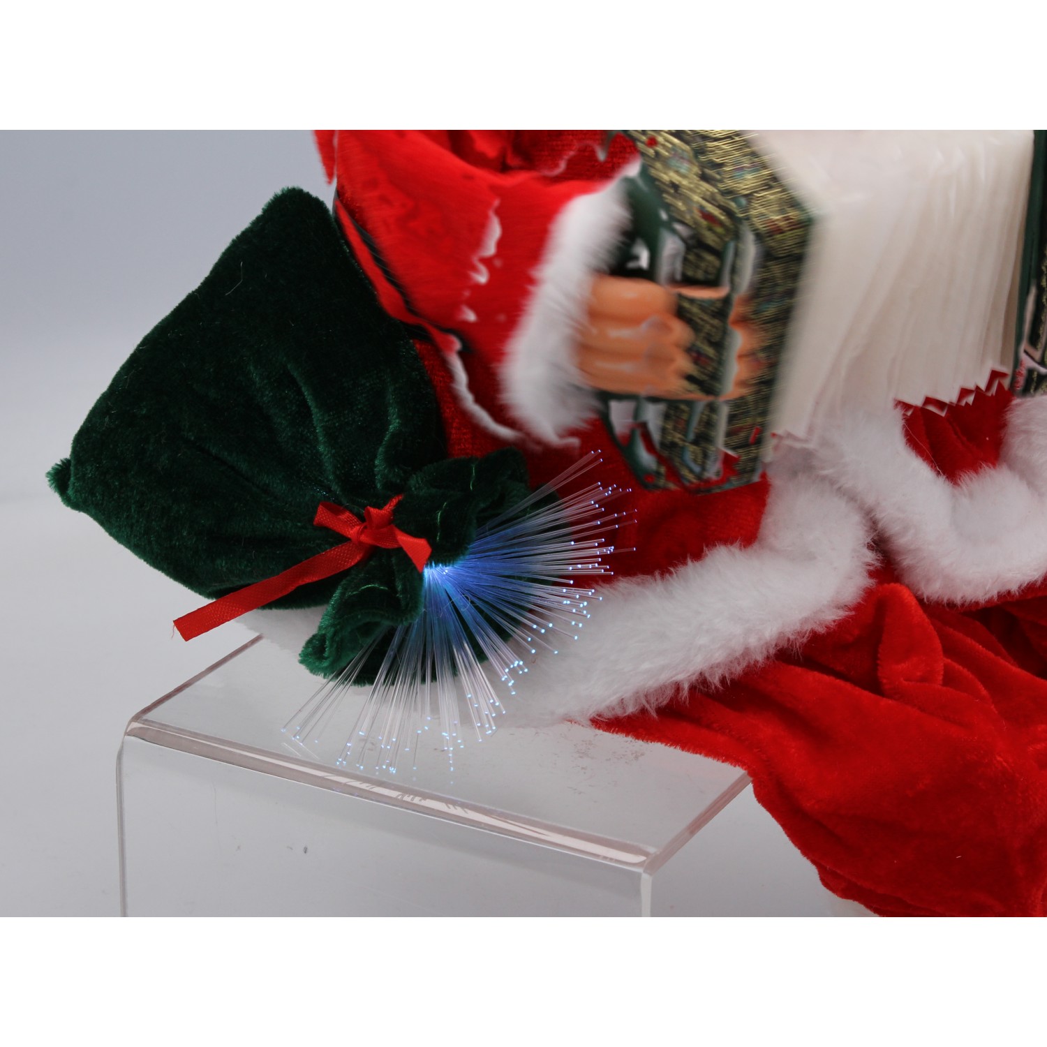Святой Николай с подвижным и играющим на аккордеоне с возможностью управления звуком (хлопком в ладоши), а также светящимся мешком.
