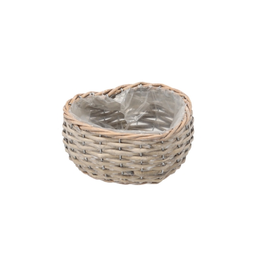 Плетеный чехол в форме сердцаОчаровательная плетеная корзина в форме сердца, идеально подходящая для украшения растений. Оснащена внутренней пленкой, которая предотвращает высыпание земли и утечку воды. Идеально подходит для создания романтических композиций в саду или в доме.Размеры кашпо: 17 x 19 x 8 см Размеры пространства для растений: 14 x 14 смЦвет: серый