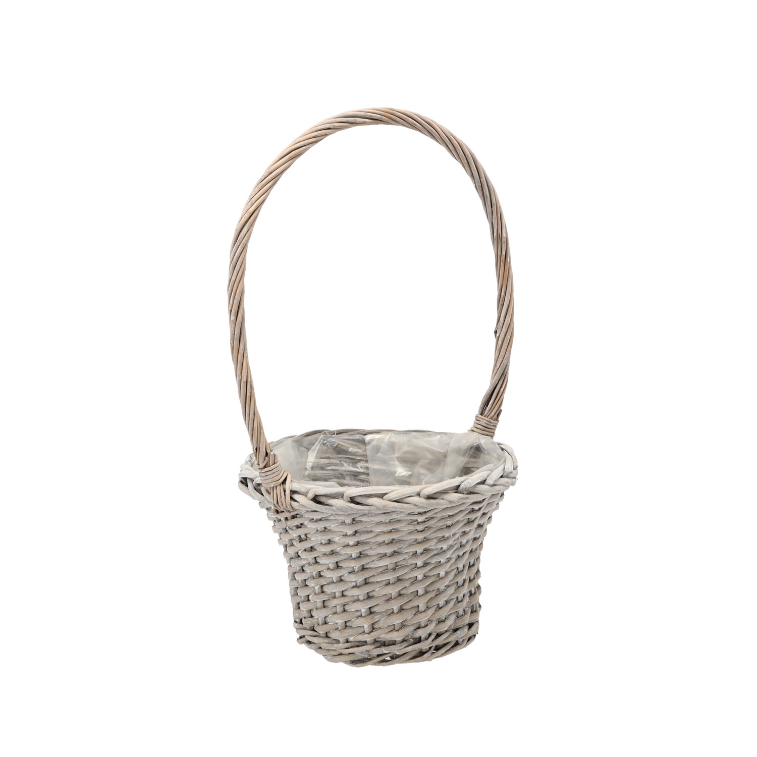 Плетеная подставка в форме корзинкиПлетеная оболочка в форме корзинки, идеально подходящая для украшения растений. Оснащена внутренней пленкой, предотвращающей высыпание почвы и вытекание воды. Прекрасно подходит для оформления растений в саду, на балконе или в доме.Размеры: 29 x 19 x 50 смЦвет: серый