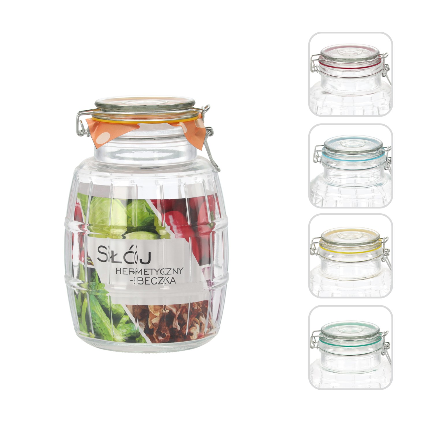 Герметичная стеклянная банка объемом 1,7 л в форме бочки представляет собой функциональное и эстетичное решение для хранения различных продуктов. Благодаря механической застежке и стеклянной крышке с прокладкой, банка обеспечивает герметичное закрытие, которое эффективно защищает хранящиеся продукты от потери свежести и аромата.