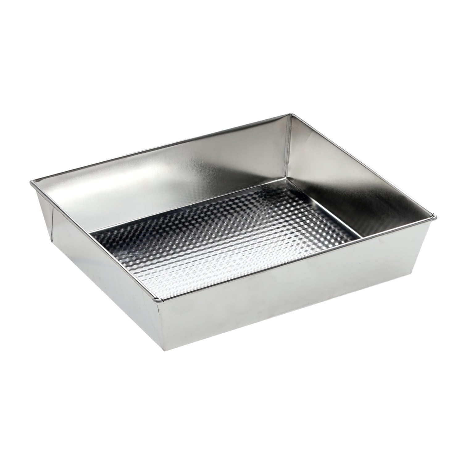 Универсальная текстурированная противень для выпечки, серебристого цвета. Продукт имеет сертификат качества и безопасности. Размеры противня: 280 x 235 x 60 мм.