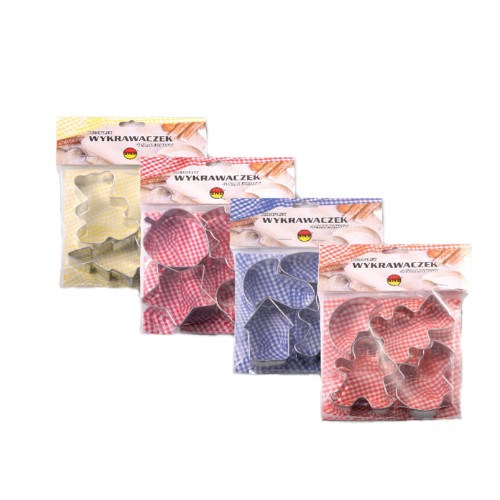 Набор содержит 4 формочки для выпечки печенья, в том числе рождественских пряников. Формочки изготовлены из металла, пригодного для контакта с пищевыми продуктами. Каждая упаковка содержит 4 различные формы, с помощью которых можно создать оригинальные выпечки.