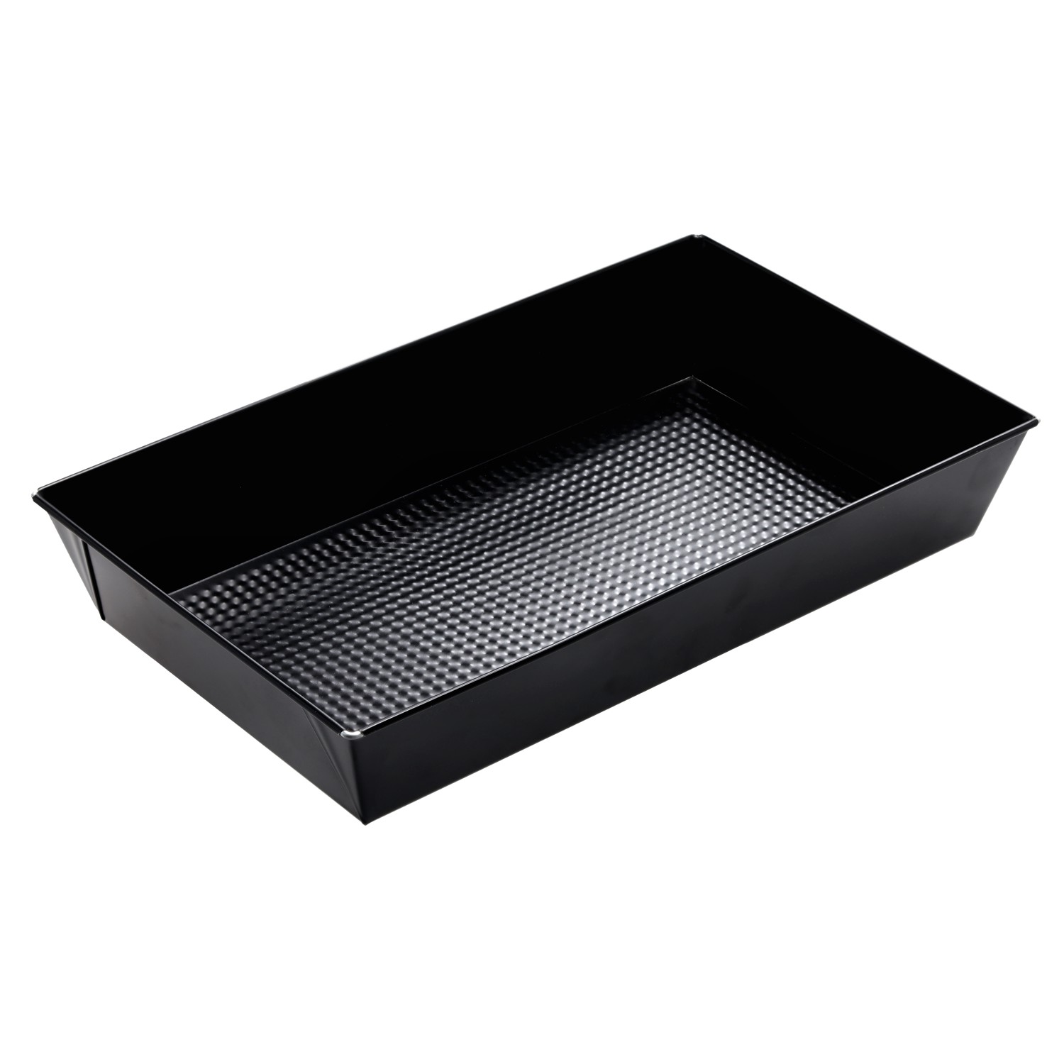 Универсальная текстурированная жаровня для запекания черного цвета. Продукт имеет сертификат качества и безопасности для здоровья.