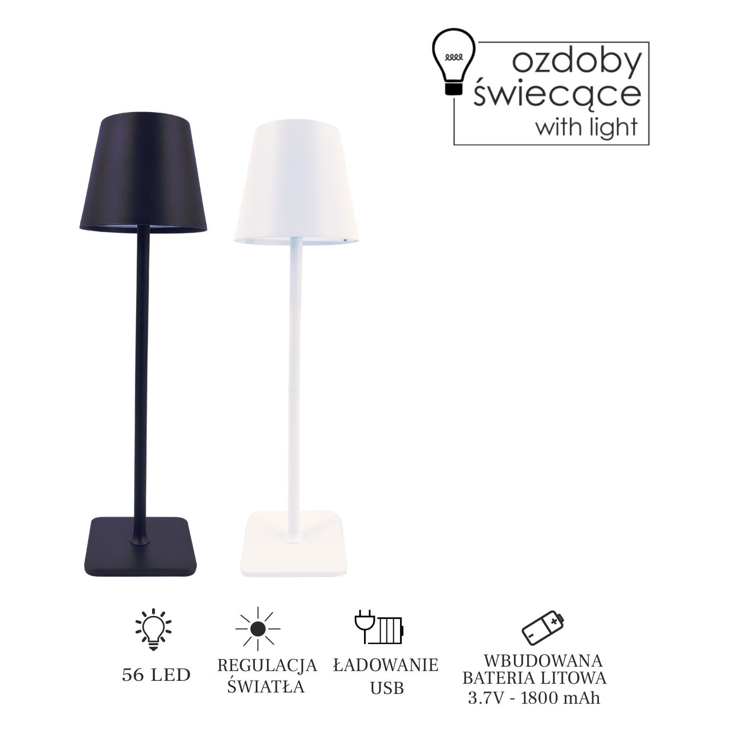 пластиковый верхний элемент металлическая основа и столб56 светодиодов1 литий-ионный аккумулятор 18650 1800 мАч в комплектезарядка через USB 80 см USB-кабель в комплектеДополнительные характеристики: IP44