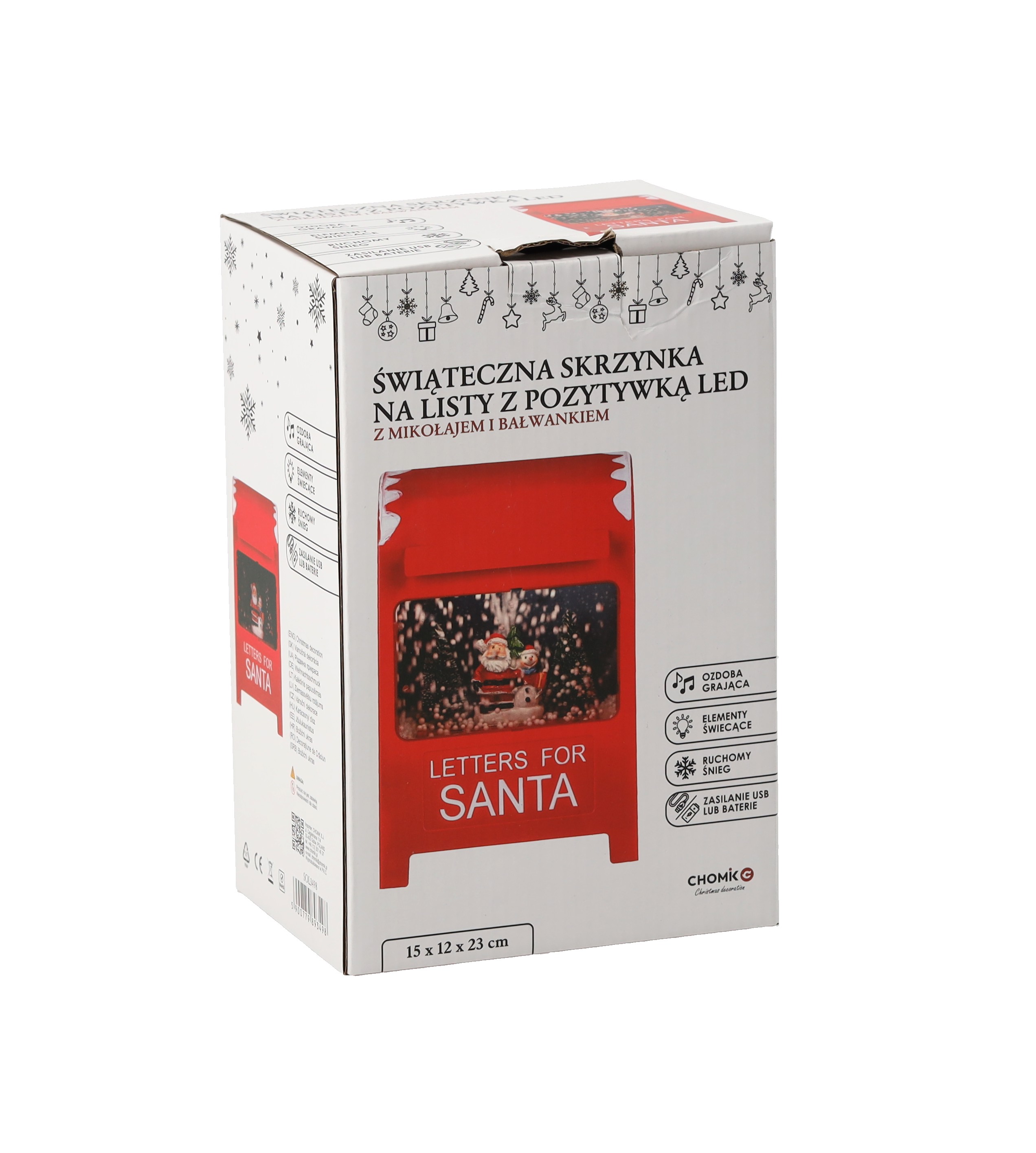 Волшебный праздничный почтовый ящик для писем Санте – настоящая находка для каждого поклонника рождественских украшений. С изображением снеговика, Санты и светодиодной музыкальной шкатулкой он создаст праздничную атмосферу в каждом доме.