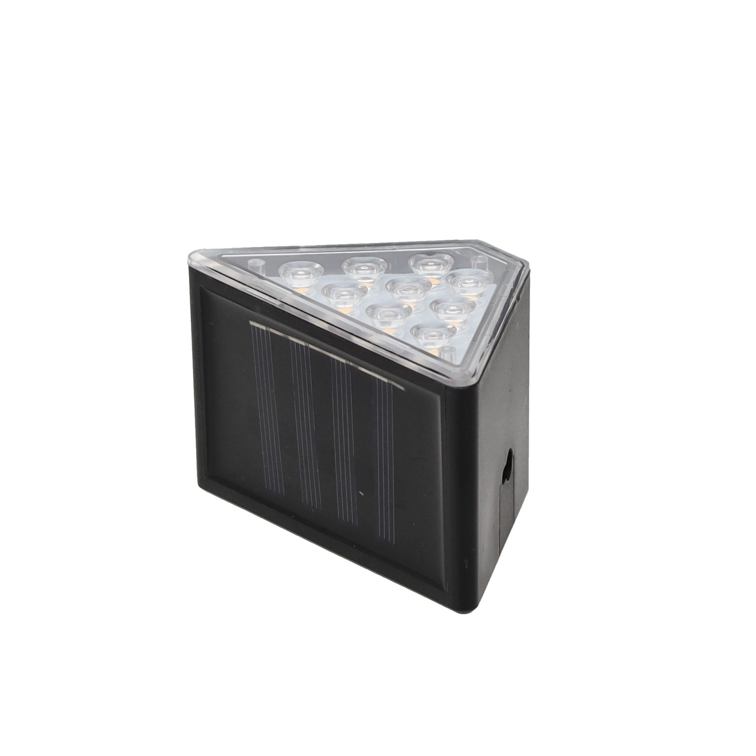 Количество светодиодов: 9 LEDЦвет светодиодов: теплый белыйРазмеры: 8,5 x 5 x 4,5 смКласс защиты: IP44Солнечная панель: 2 В, 100 мАч, поликристаллический кремнийБатарея: 1,2 В AA 300 мАч Ni-MH (никель-металлогидридная)Время зарядки: 7-8 часовВремя работы: 6-7 ч