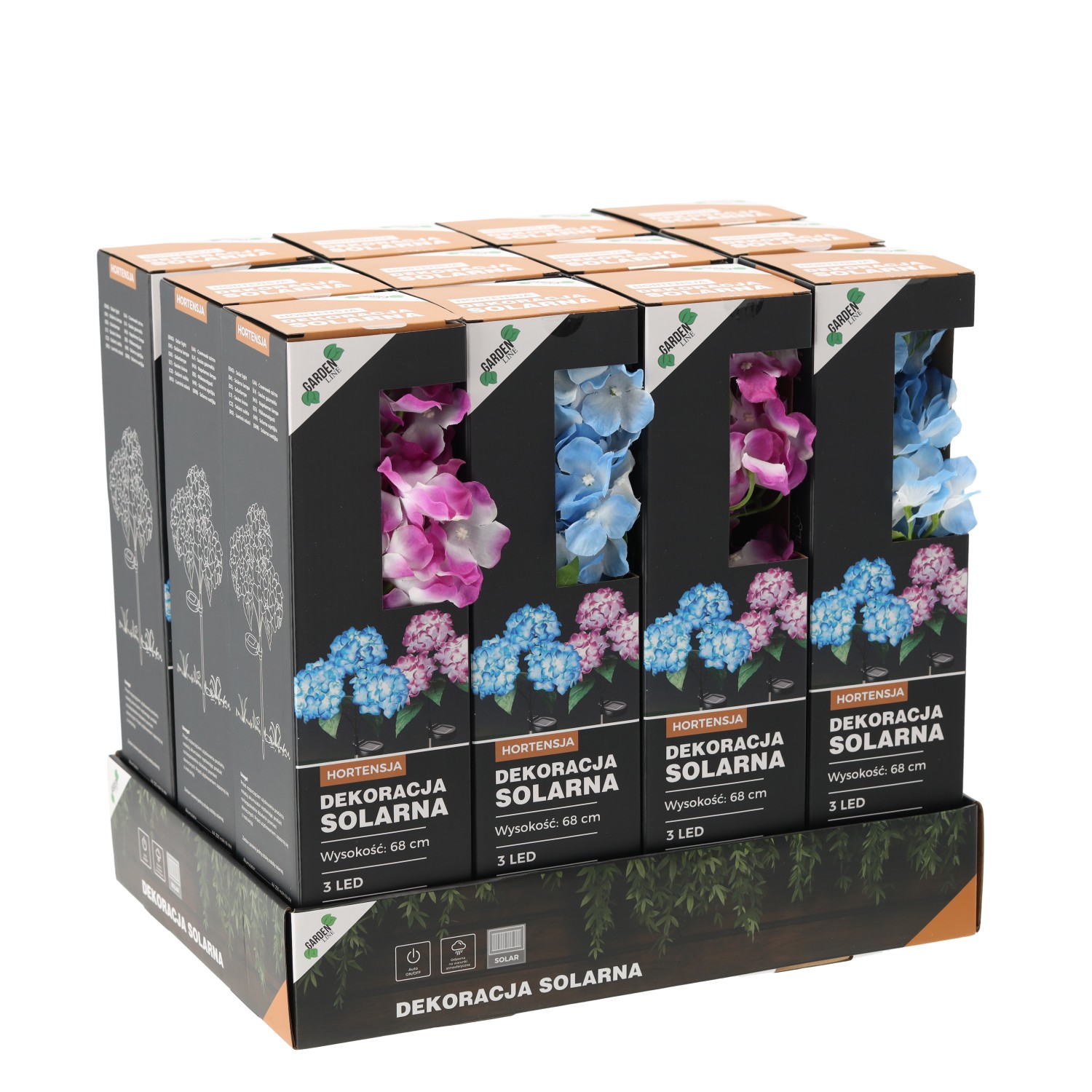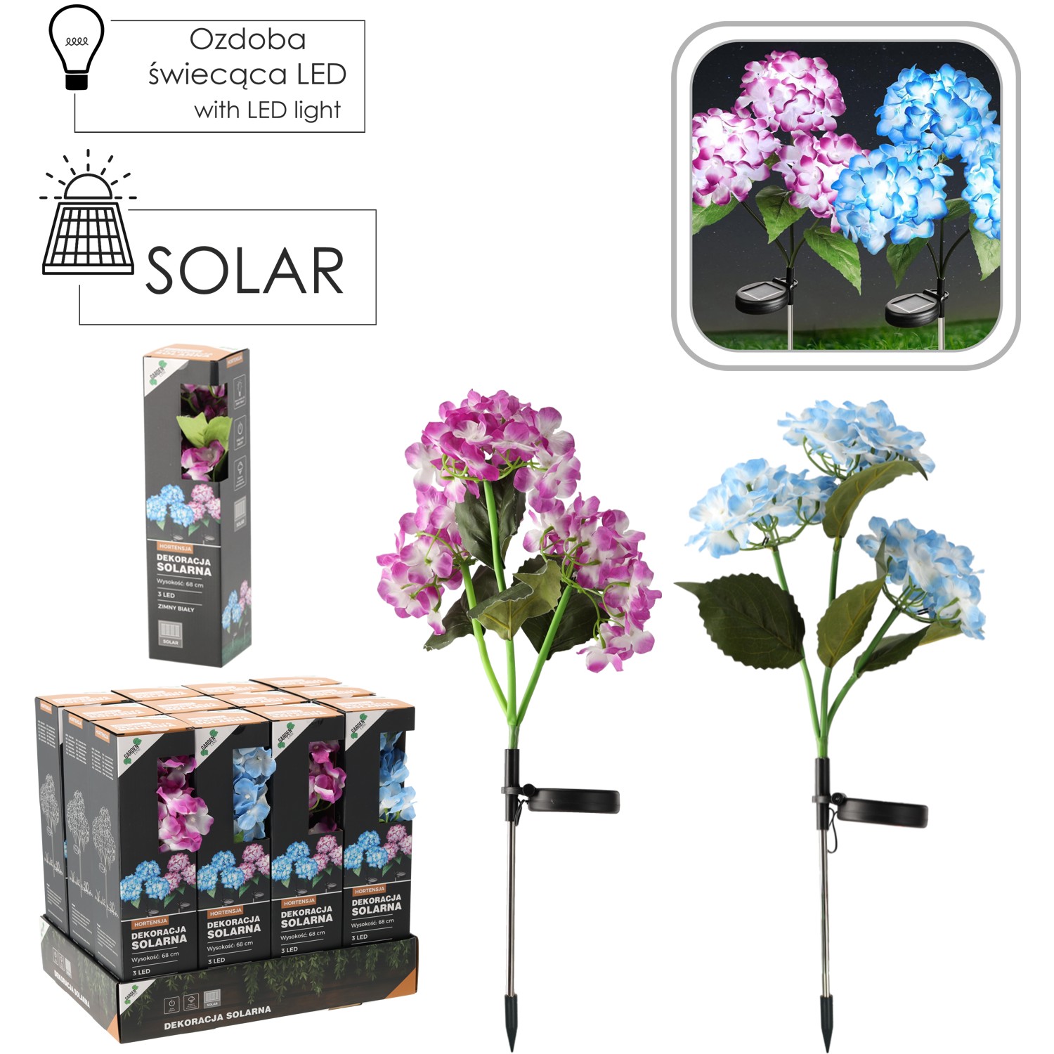 Количество цветов: 3 веточкиЦвет цветов: синий или фиолетовыйКоличество светодиодов: 3 x 1 LED (3 светодиода)Цвет светодиодов: холодный белыйРазмеры: высота 68 смКласс защиты: IP44Солнечная панель: аморфный кремнийБатарея: AA 200 мАч Ni-MH (никель-металлогидридная)Время зарядки: 7-8 часовВремя работы: 6-7 часов