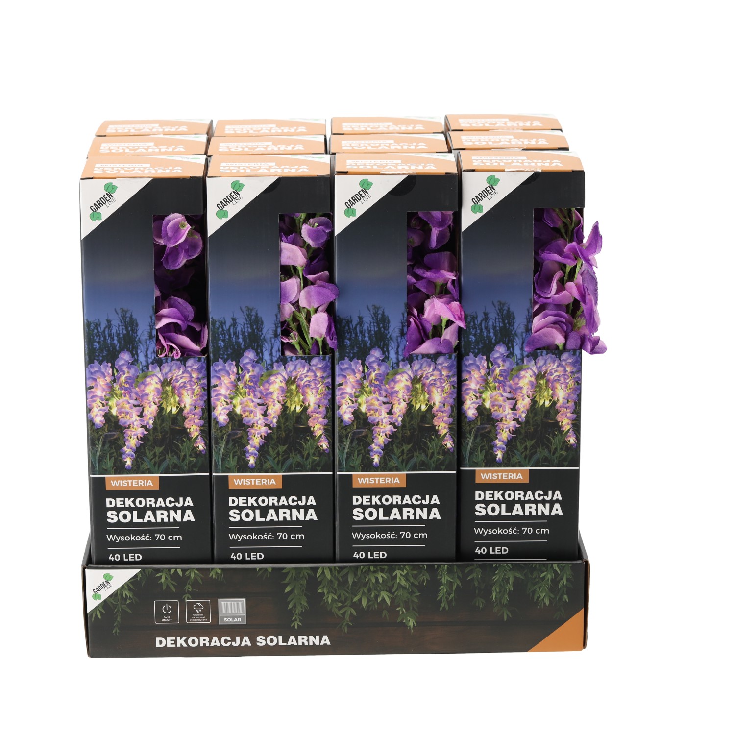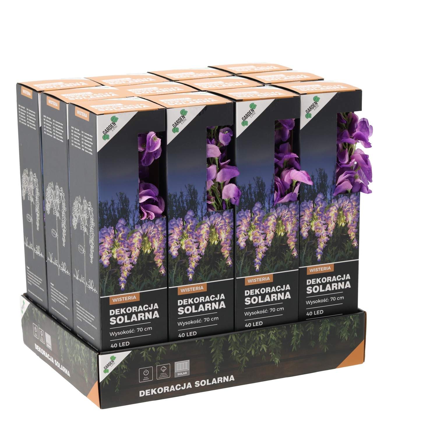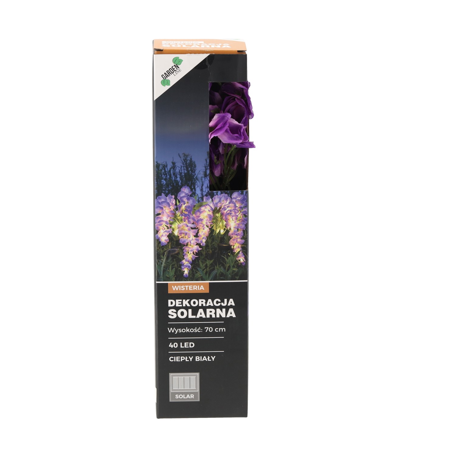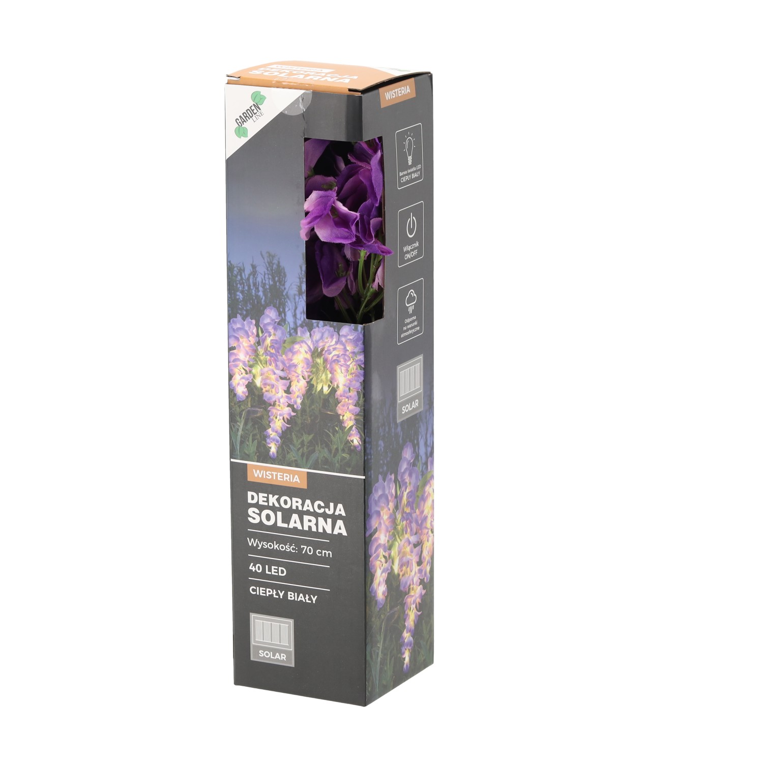 Количество цветов: 4 веточкиКоличество диодов: 4 x 10 LED (40 LED)Цвет светодиодов: теплый белыйРазмеры: высота 70 смКласс защиты: IP44Солнечная панель: 2 В 40 мА аморфный кремнийБатарея: 1,2 В AA 200 мАч Ni-MH (никель-металлогидридная)Время зарядки: 7-8 часовВремя работы: 6-7 часов