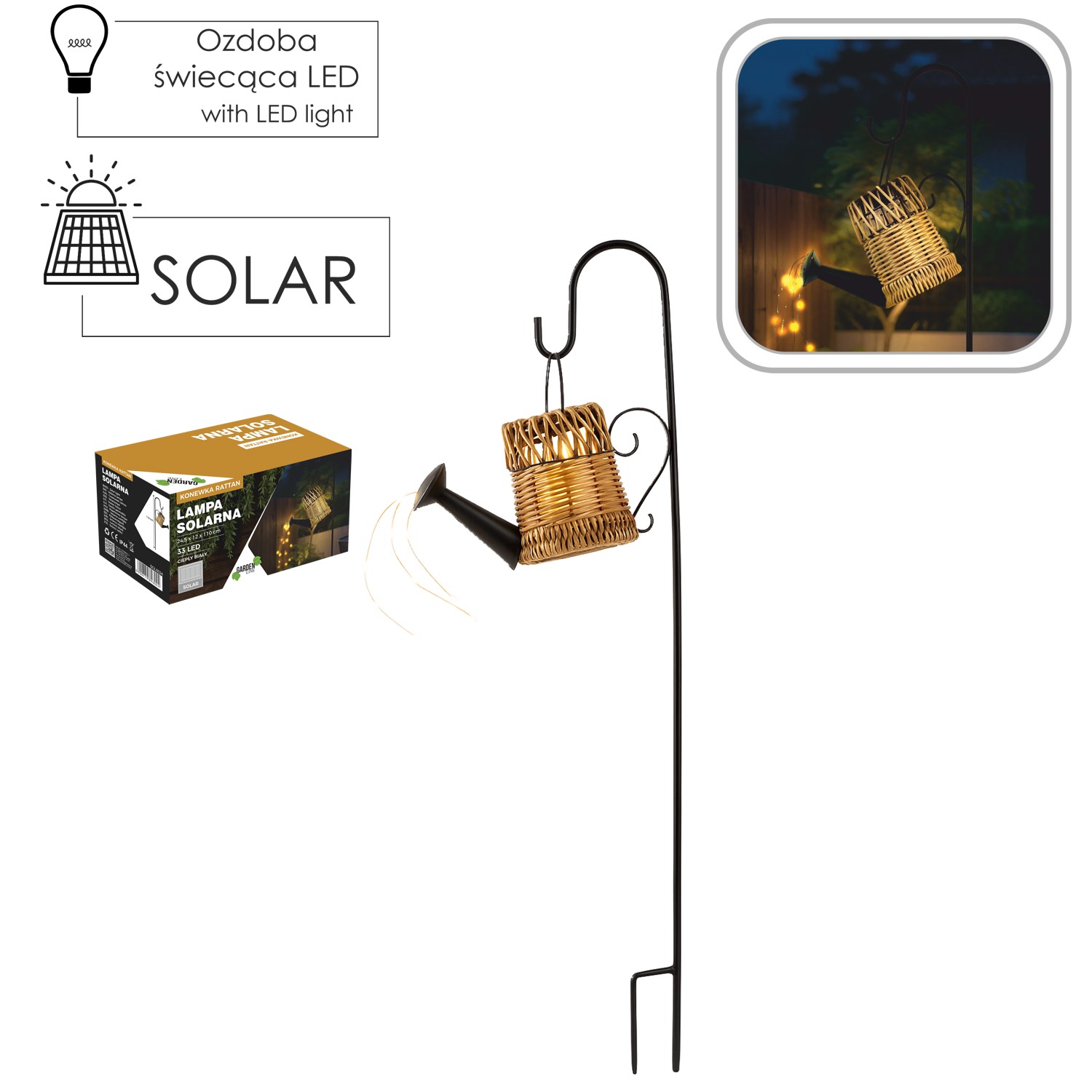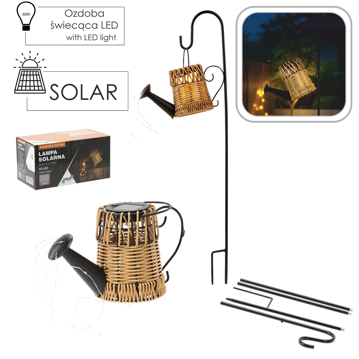 Количество светодиодов: 33 LEDЦвет светодиодов: теплый белыйРазмеры: 24,5 x 12 x 110 смМатериал лейки: ротангКласс герметичности: IP44Солнечная панель: аморфный кремнийБатарея: AA 600 мАч Ni-MH (никель-металлогидридная)Время зарядки: 7-8 часовВремя работы: 6-7 часов