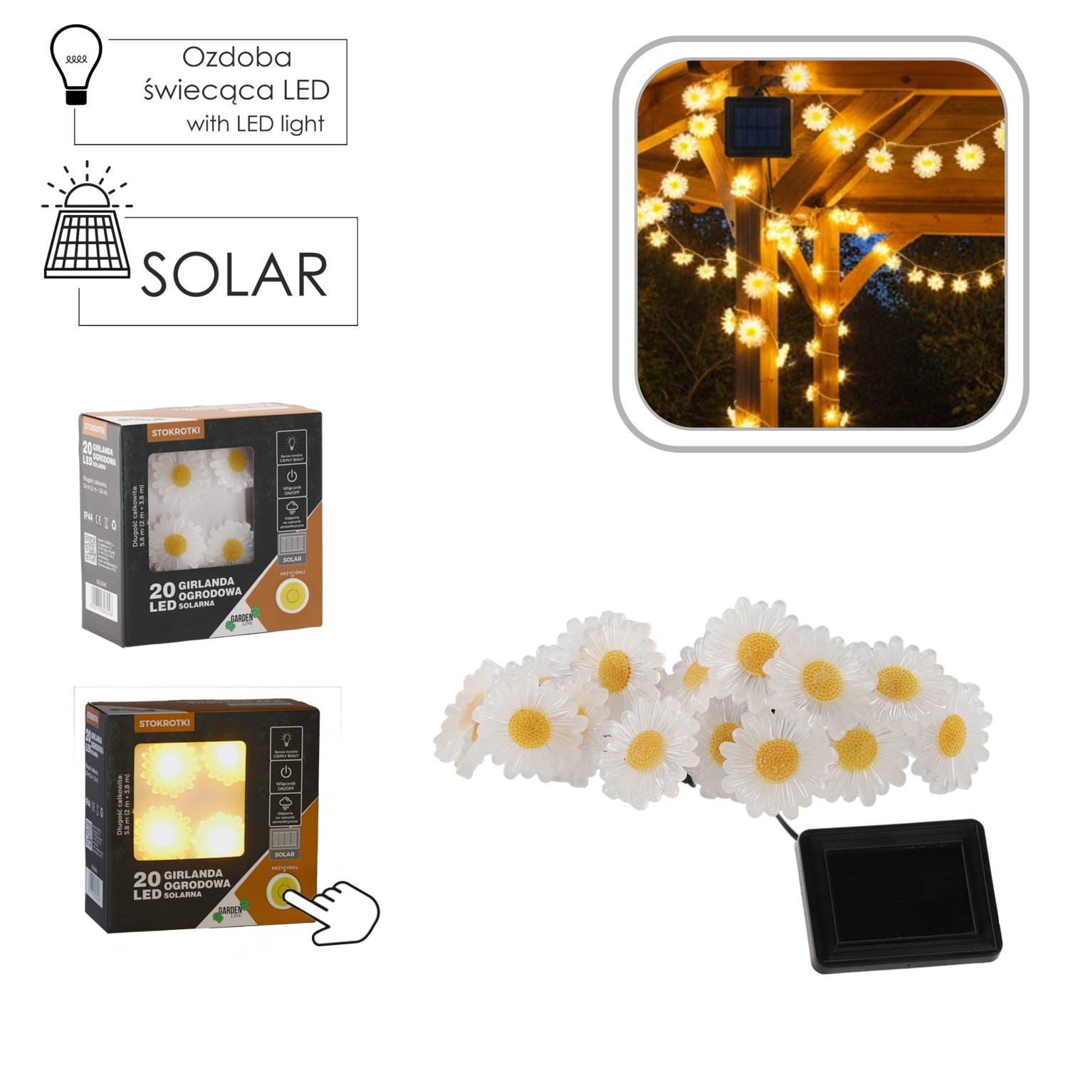 Количество светодиодов: 20 LEDЦвет светодиодов: теплый белыйРазмеры: 2 м + 3,8 мРасстояние между диодами: 20 смФункции: постоянный свет или миганиеКласс защиты: IP44Солнечная панель: поликристаллический кремнийБатарея: 1,2 В AA 400 мАч Ni-MH (никель-металлогидридная)Время зарядки: 7-8 часовВремя работы: 6-7 часов
