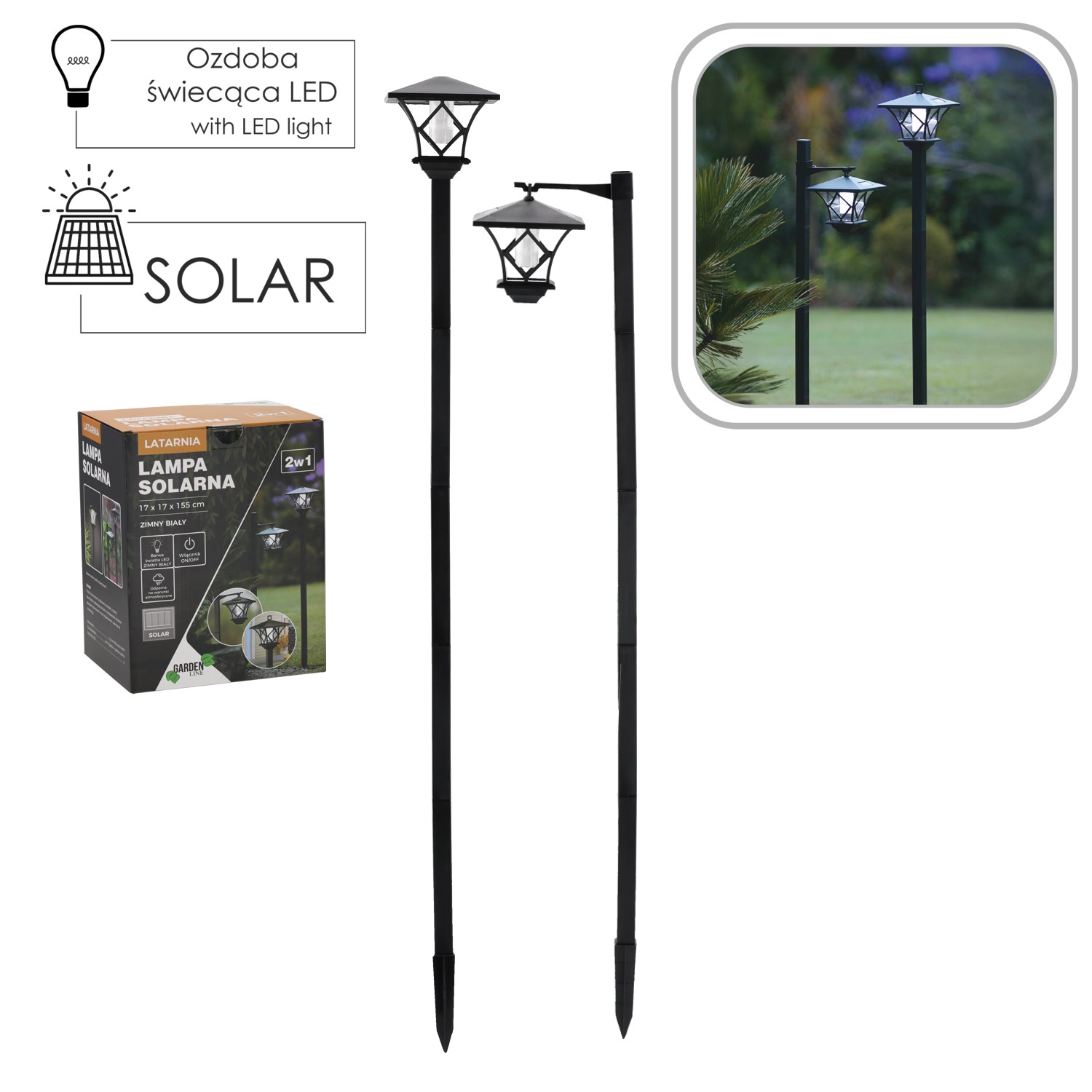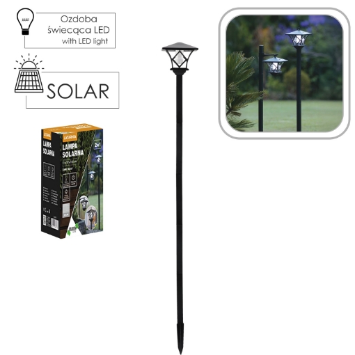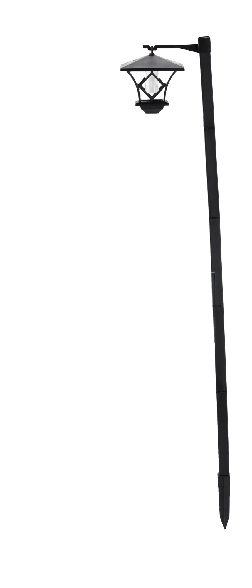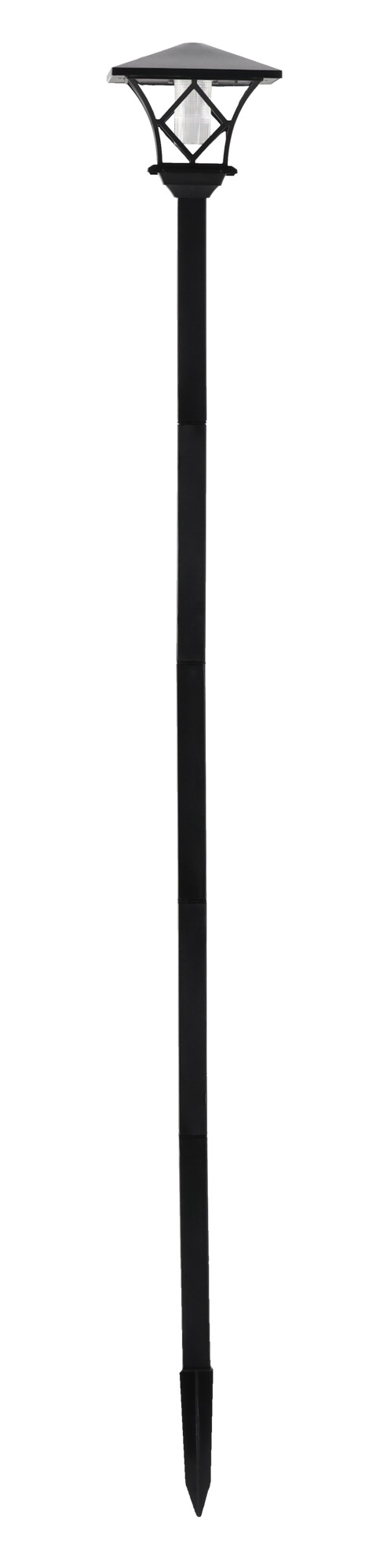 Солнечная лампа 1,5 мКоличество диодов: 2 LEDЦвет светодиодов: холодный белыйМатериал: пластикРазмеры: 17 x 17 x 155 смКласс защиты: IP44Солнечная панель: 2 В 60 мА поликристаллический кремнийБатарея: 1,2 В AA 300 мАч Ni-MH (никель-металлогидридная)Время зарядки: 7-8 часовВремя работы: 6-7 часов