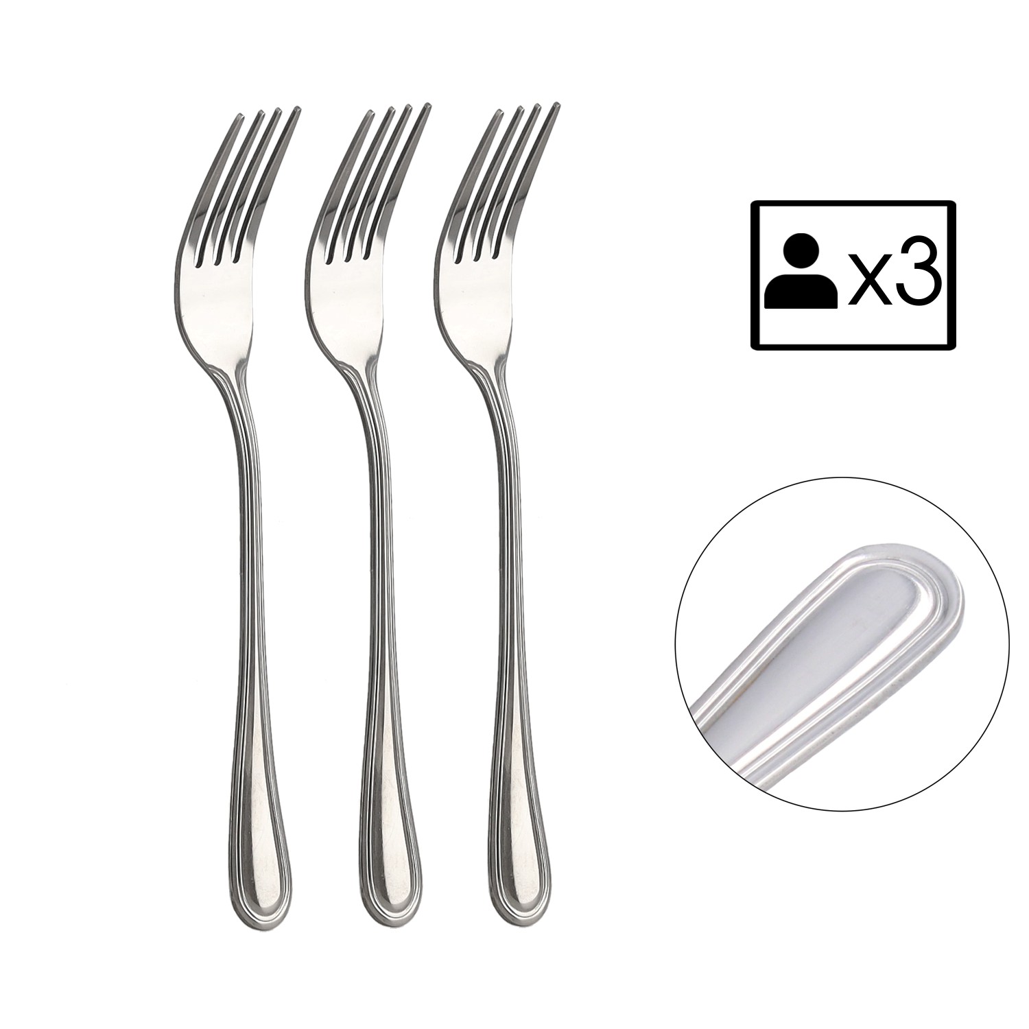 Набор из трех вилок серии London, изготовленных из высококачественной нержавеющей стали. Традиционный дизайн с изящной окантовкой придает им элегантность и позволяет им идеально сочетаться с любой столовой посудой. Одна из самых популярных моделей в нашем ассортименте.