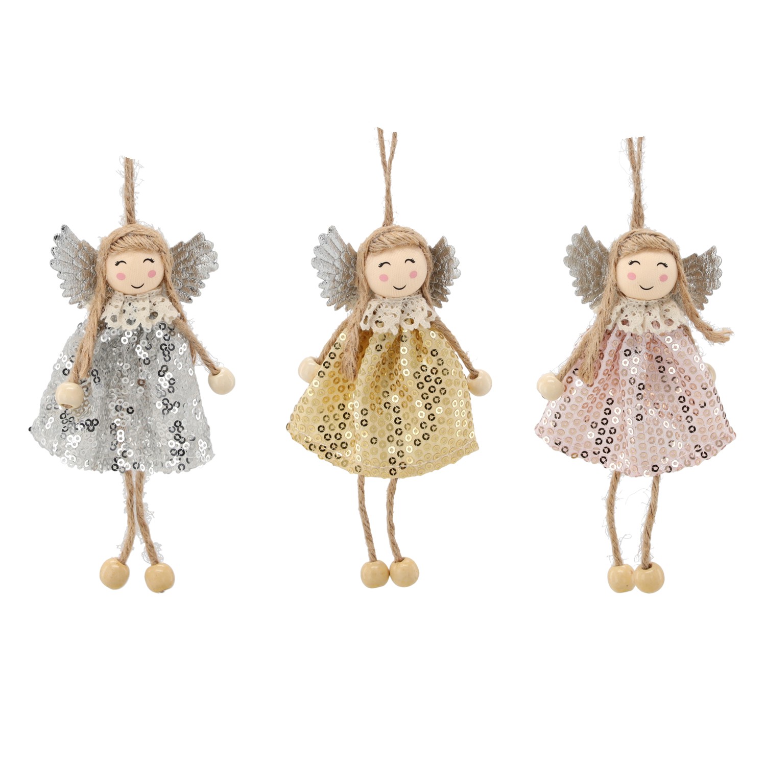Рождественское украшение в виде ангела с веревочкой для подвешивания.Два варианта: розовый/синий/желтыйРазмеры: 7,5 x 16 см