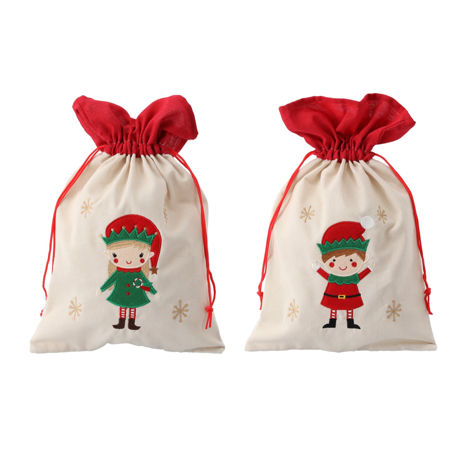 Мешок для подарков с изображением эльфа, доступно два варианта: мальчик/девочка.Мешок оснащен застежкой для закрытия.Цвет: бежевый, верхняя часть краснаяРазмеры: 25 x 40 см
