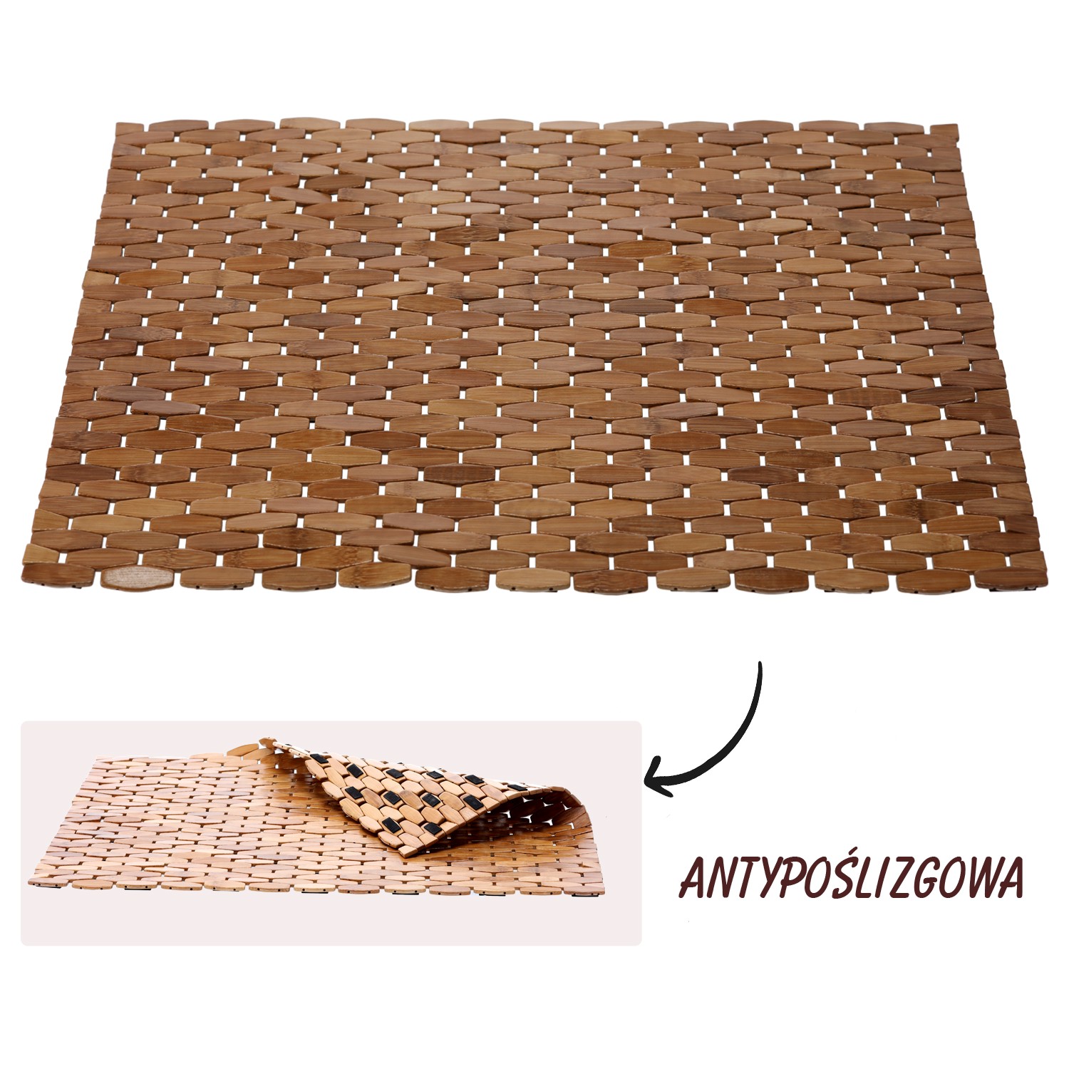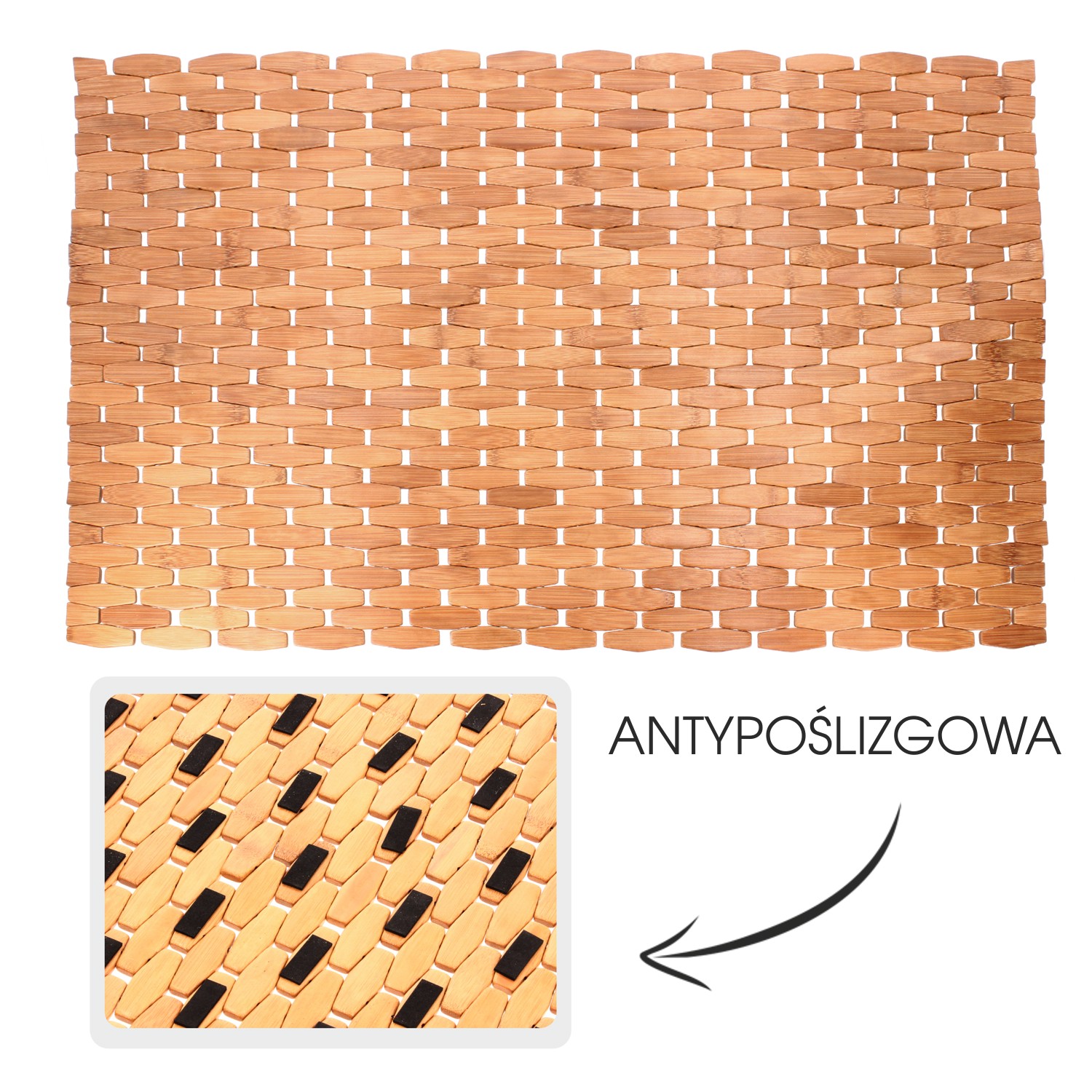 Бамбуковый коврик – это идеальный способ поддерживать порядок в вашей ванной комнате. Бамбуковое дерево обладает антибактериальными и противогрибковыми свойствами . Оно устойчиво к воздействию воды. Коврик изготовлен из гладких шлифованных бамбуковых планок и имеет противоскользящие прокладки из пеноматериала , благодаря которым вам не придется беспокоиться о безопасности членов вашей семьи. Ее естественный цвет делает ее практичной и неподвластной времени.