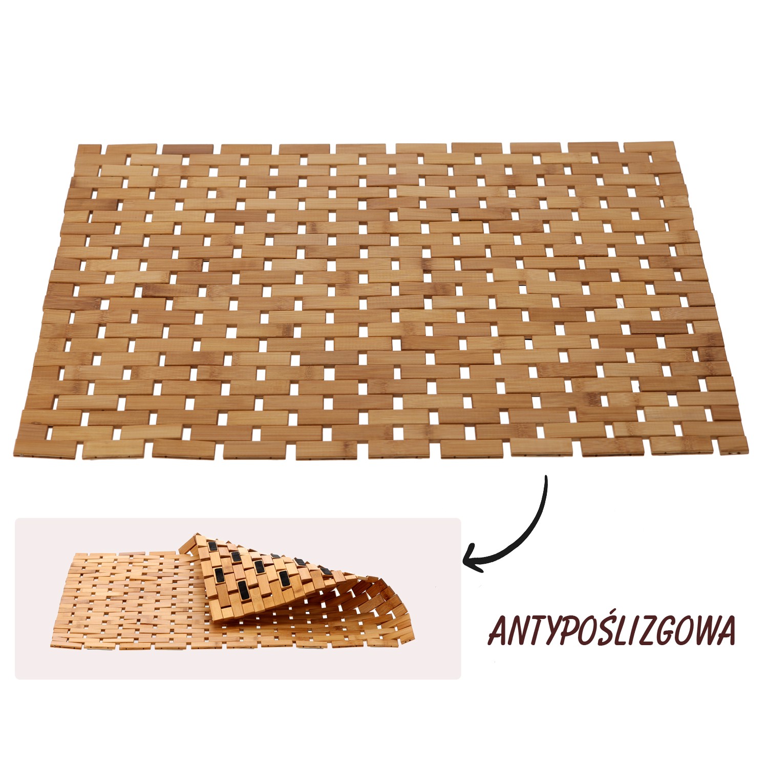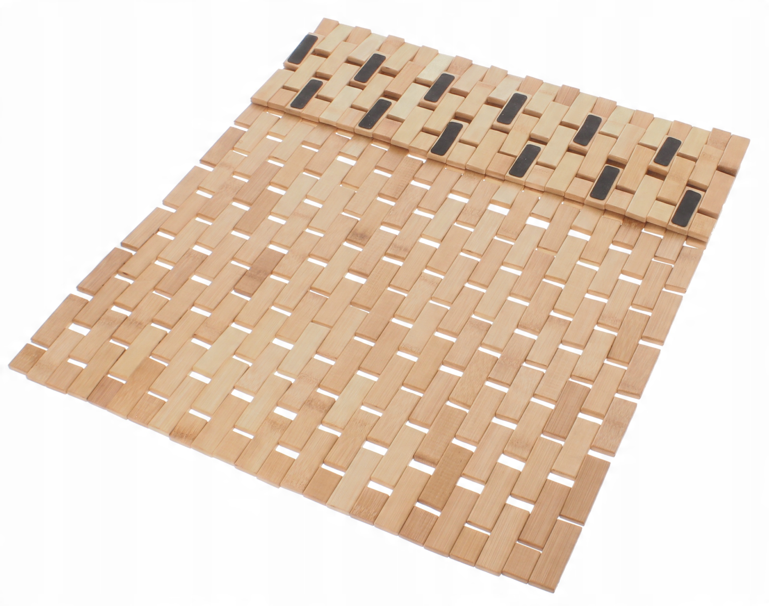 Бамбуковый коврик – это идеальный способ поддерживать порядок в вашей ванной комнате. Бамбуковое дерево обладает антибактериальными и противогрибковыми свойствами . Оно устойчиво к воздействию воды. Коврик изготовлен из гладких шлифованных бамбуковых планок и имеет противоскользящие прокладки из пеноматериала , благодаря которым вам не придется беспокоиться о безопасности членов вашей семьи. Ее естественный цвет делает ее практичной и неподвластной времени.